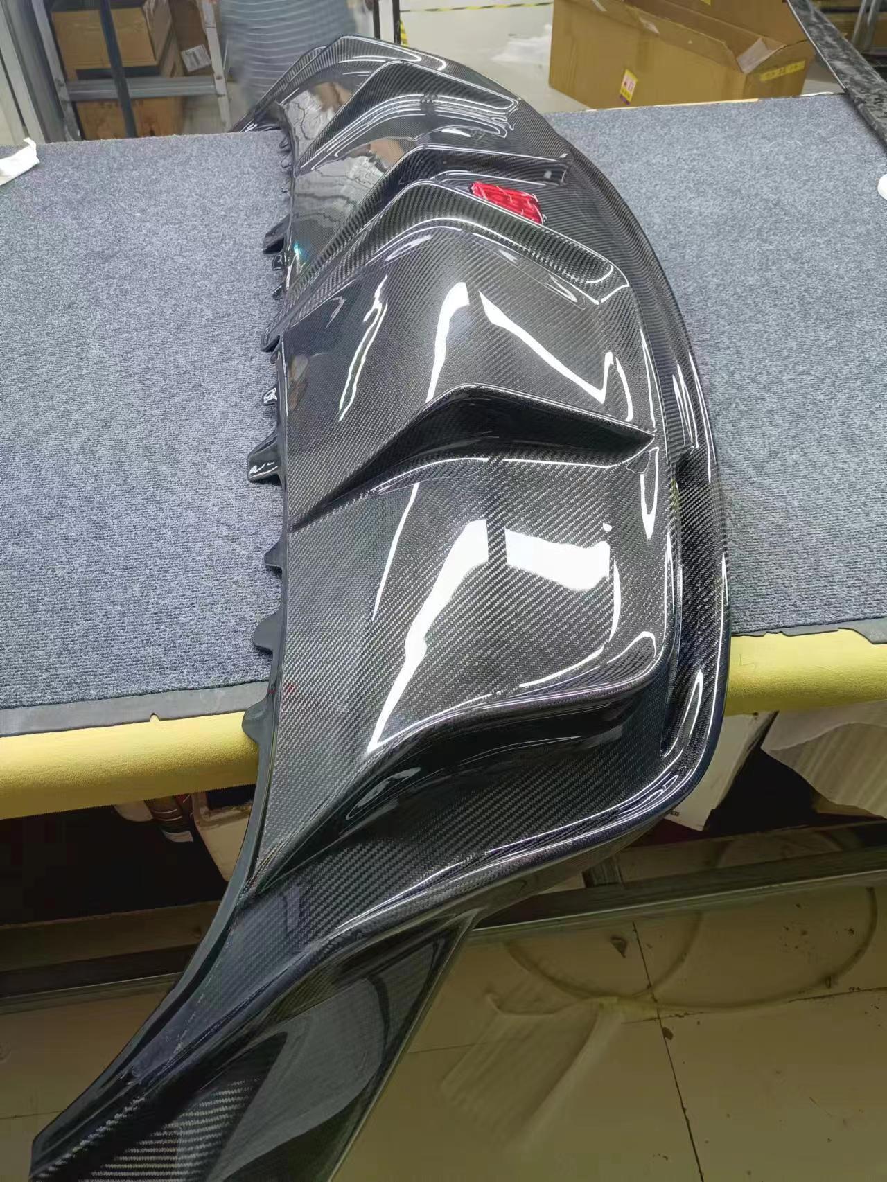 Tags: automotive exterior tuning, car aerodynamics, carbon fiber body kit, front lip splitter, lightweight car hood, rear trunk spoiler, side skirt extensions