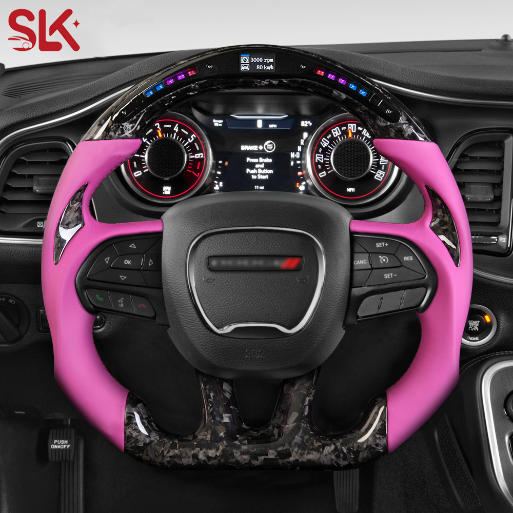Upgrade your Dodge interior with this premium LED Carbon Fiber Steering Wheel. Features forged carbon construction, real-time data display, and ergonomic grip.