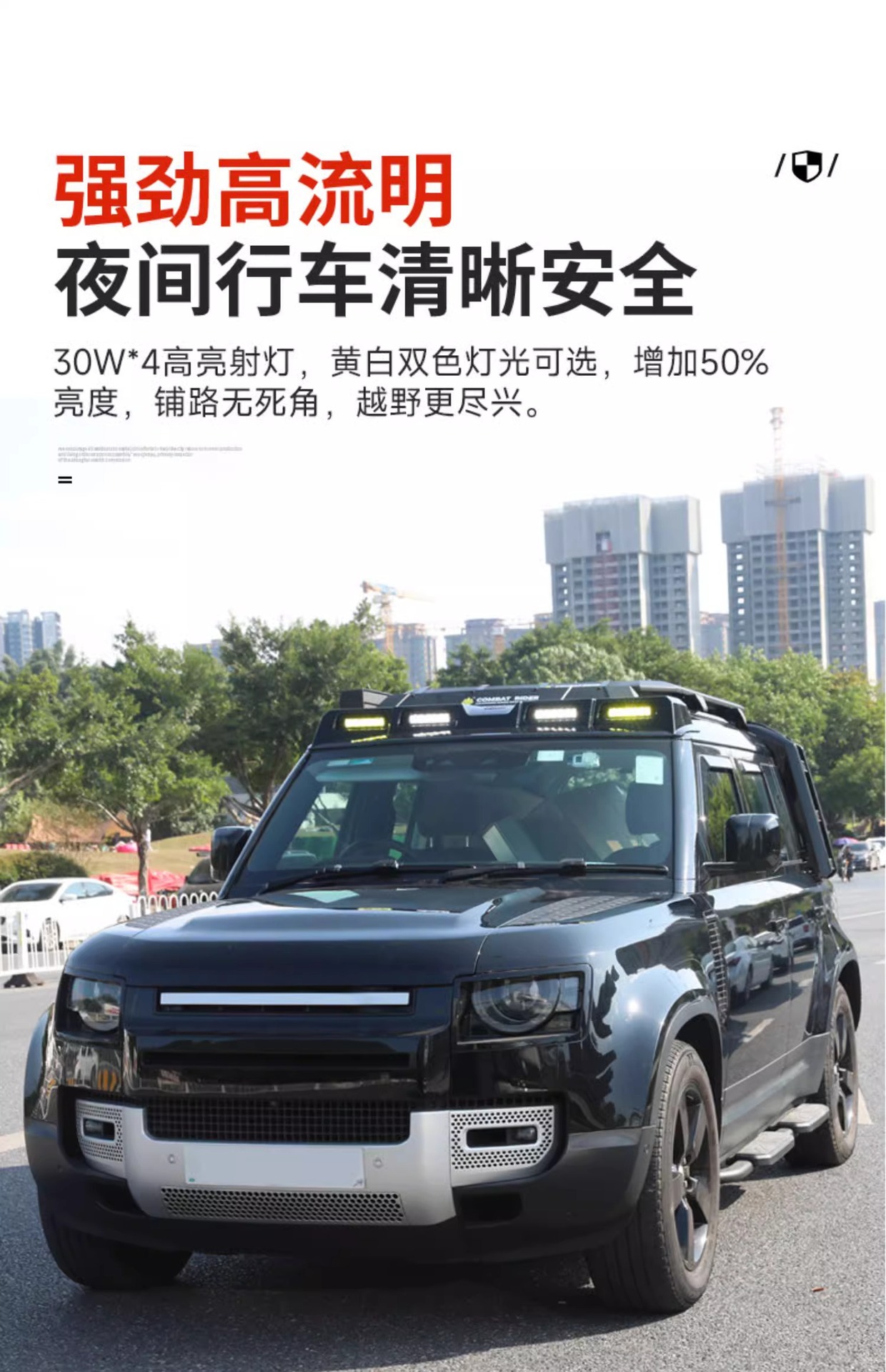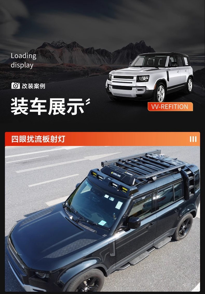 Tags: 4x4 accessories, carbon fiber housing, driving work light, Land Rover Defender upgrades, LED light bar, off-road lighting, Roof Spotlight