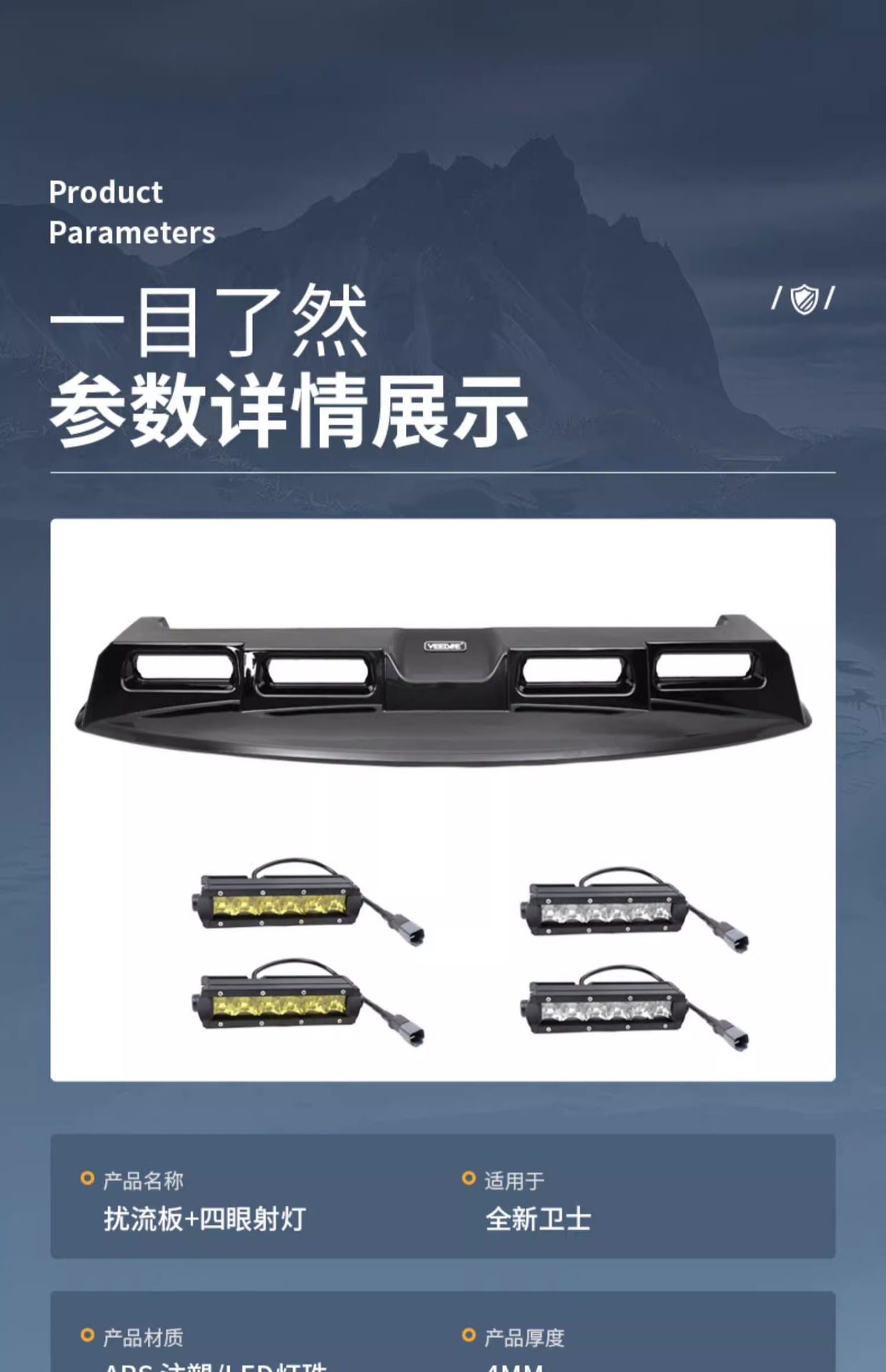 - High-intensity LED chips provide exceptional brightness for enhanced visibility during night off-roading and tactical missions.