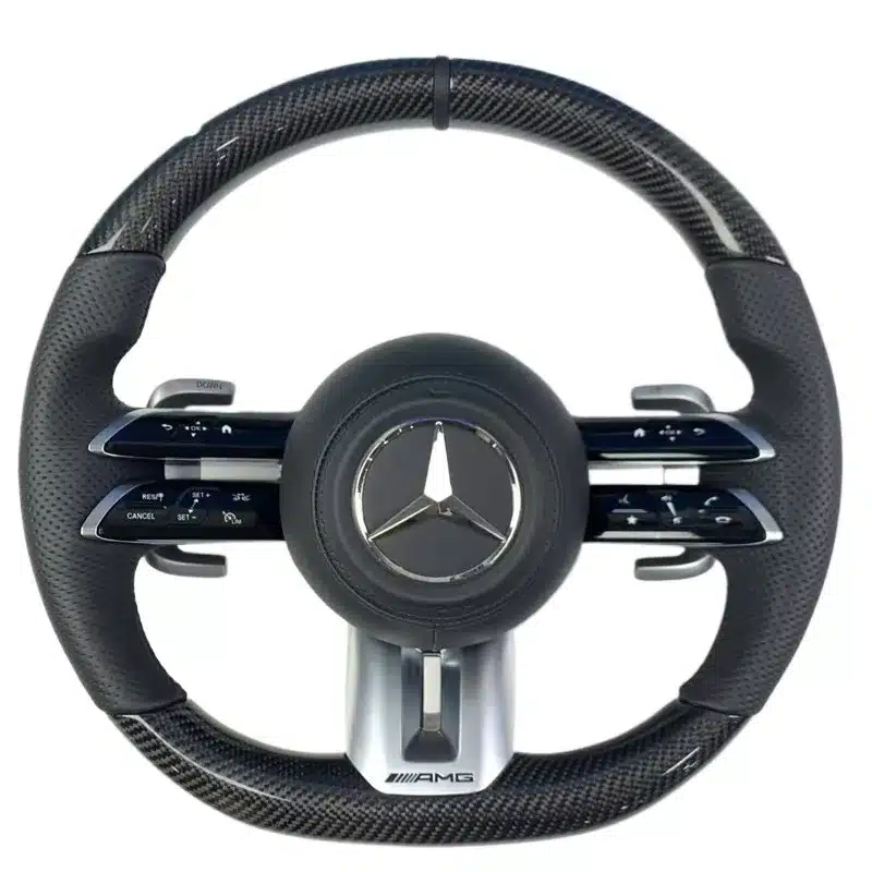 Upgrade your driving experience with this Carbon Fiber Steering Wheel Assembly in AMG Dragonfly Style. Durable, lightweight, and designed for Mercedes-Benz.