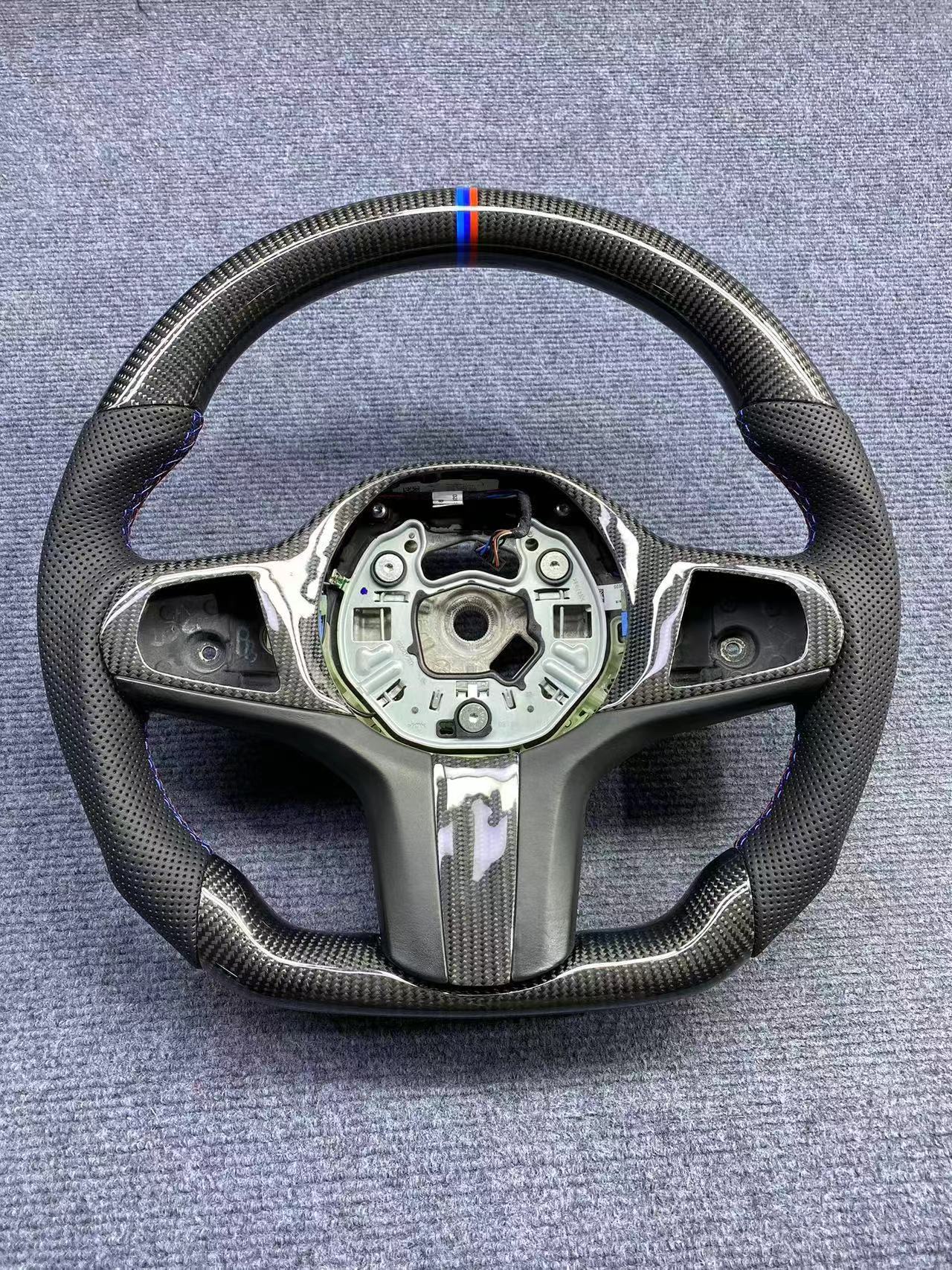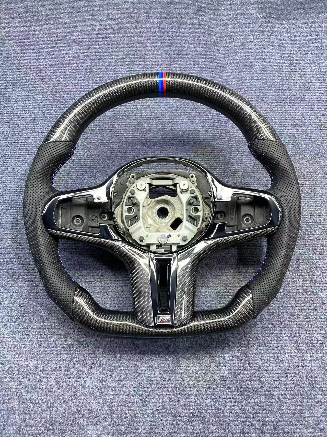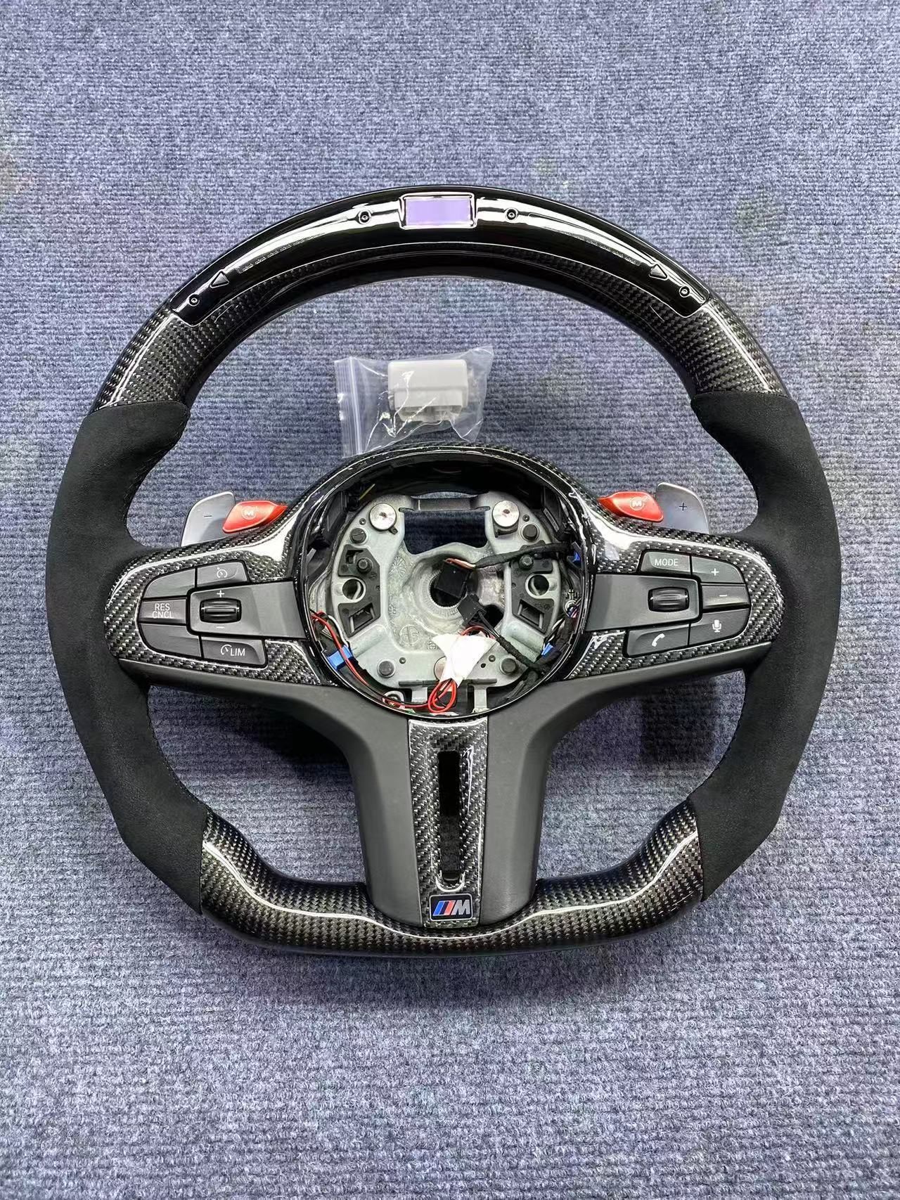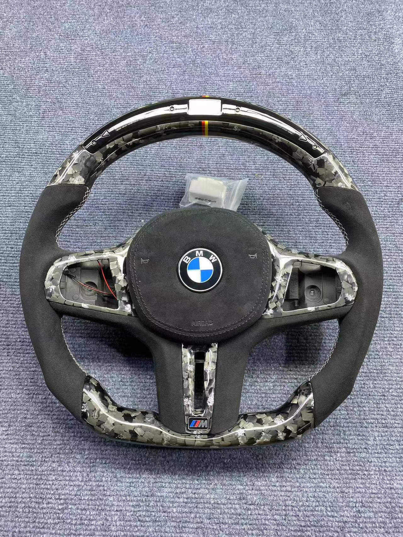 Tags: BMW G series steering, car modification, carbon fiber steering wheel, forged carbon wheel, LED shift lights, performance interior, racing steering wheel