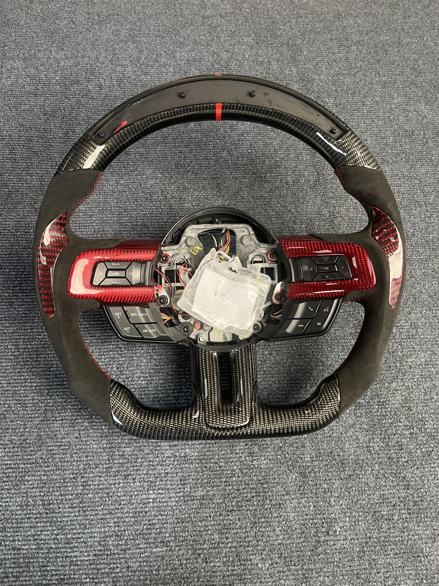 Tags: automotive interior modifications, carbon fiber car parts, carbon fiber steering wheel, custom car wheel, Mustang interior upgrade, performance steering wheel, racing steering wheel replacement
