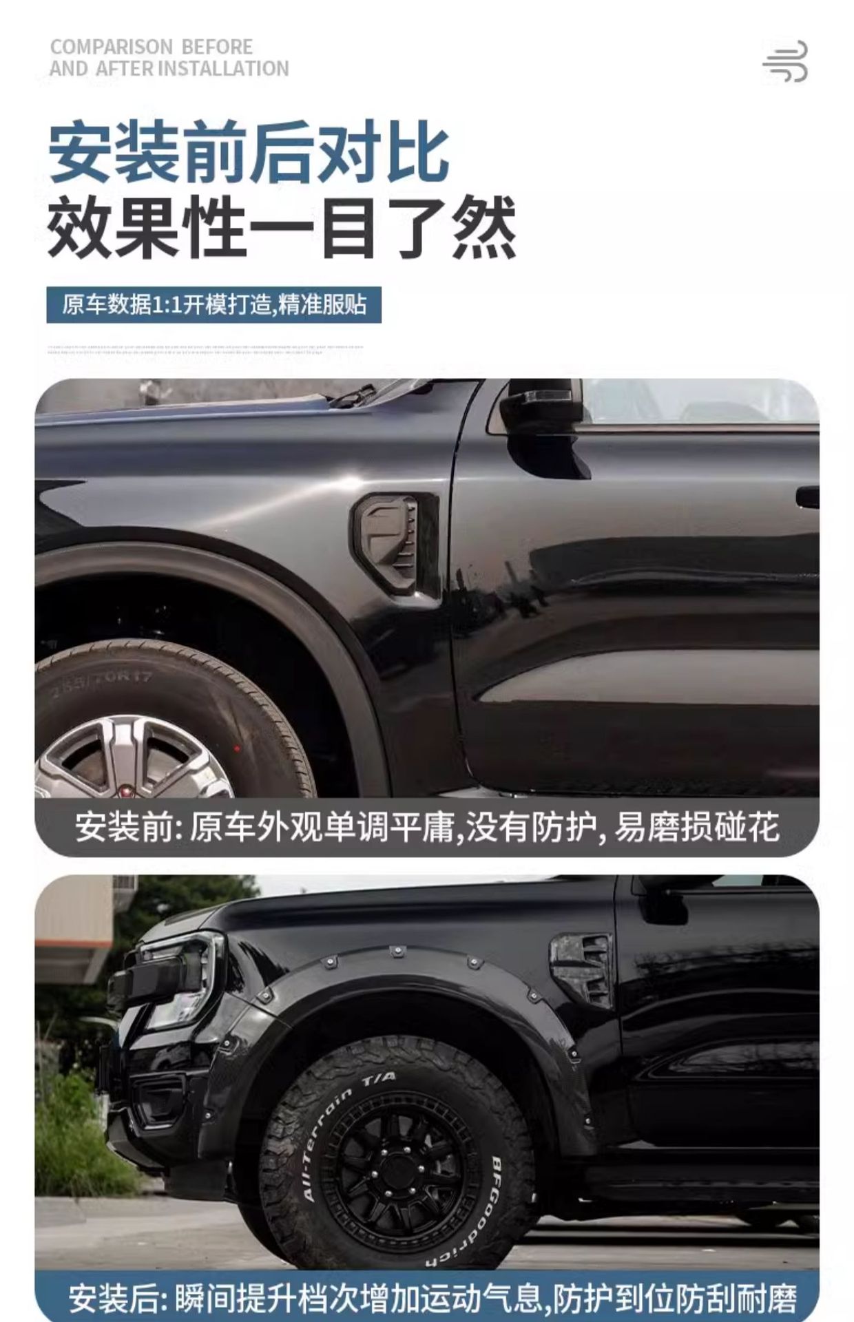 - Specifically designed for Ford Ranger fender vents to ensure a seamless integration with the vehicle’s body lines.