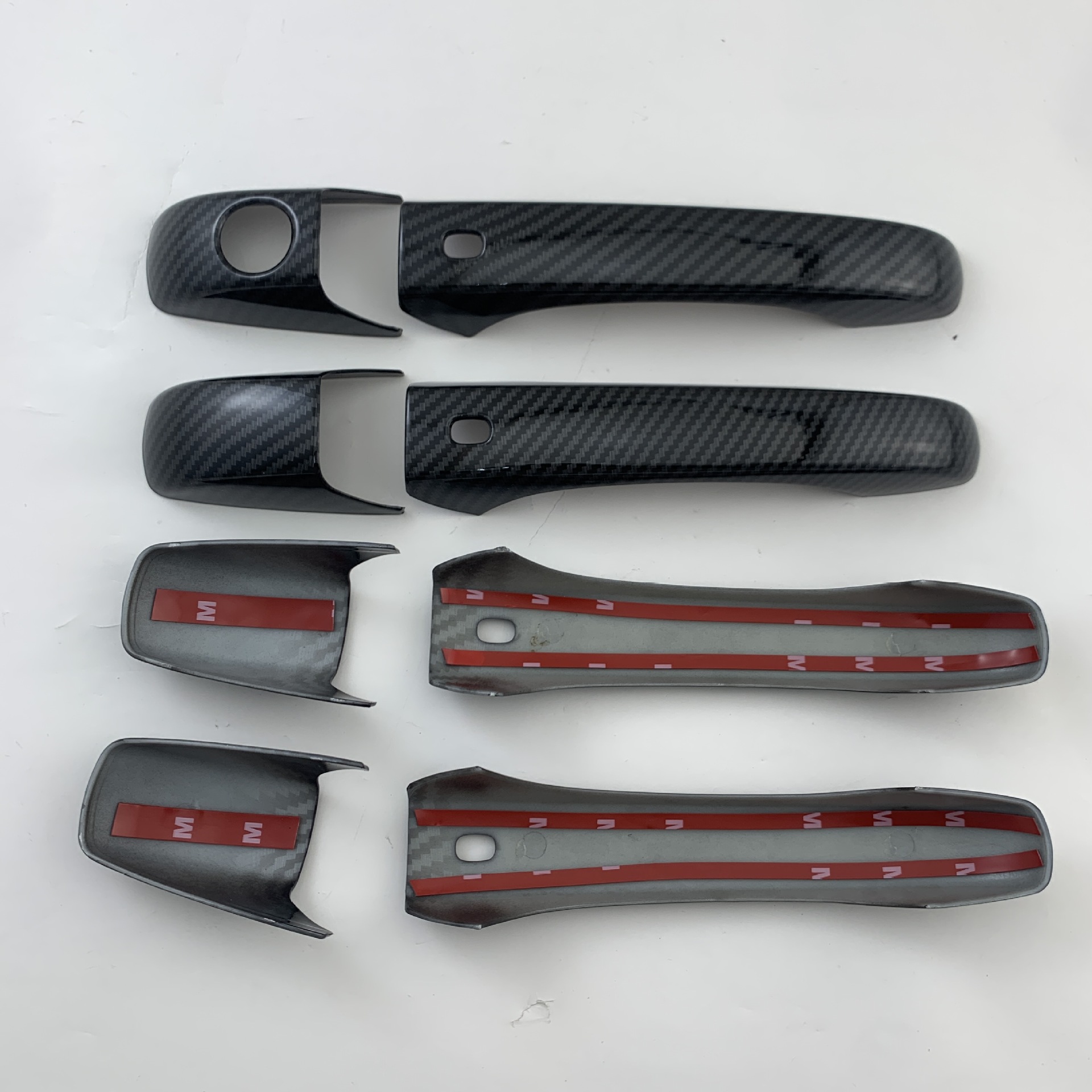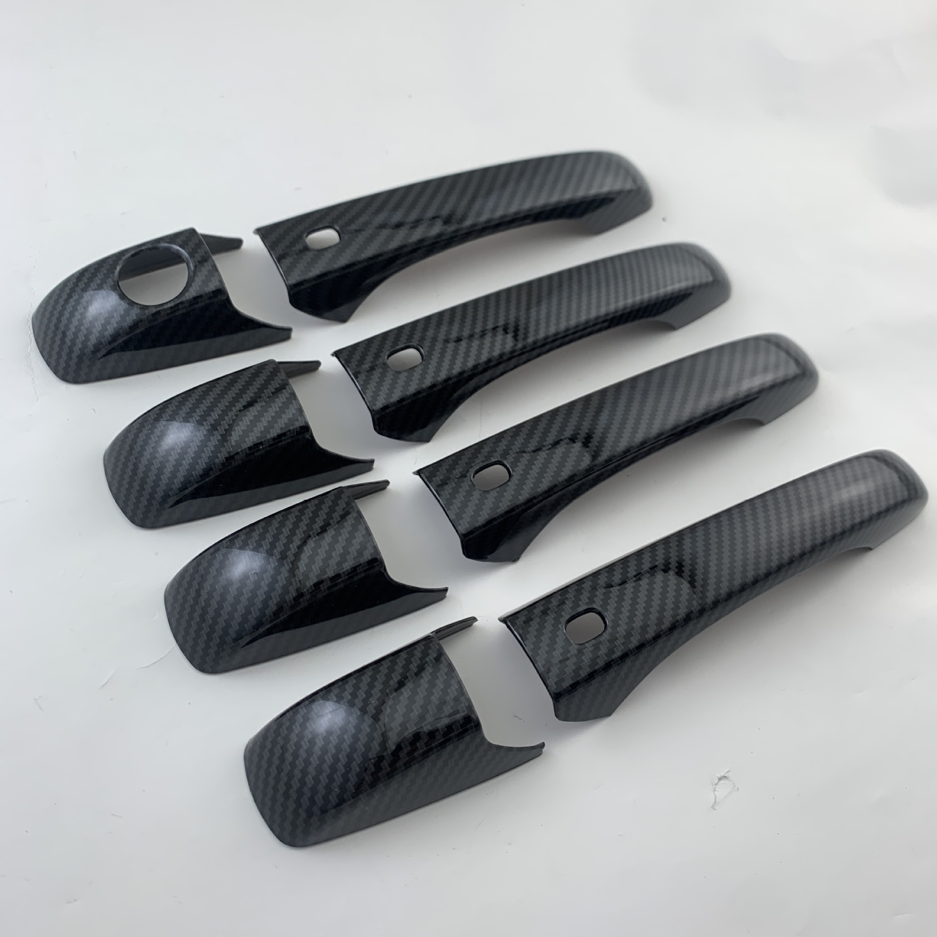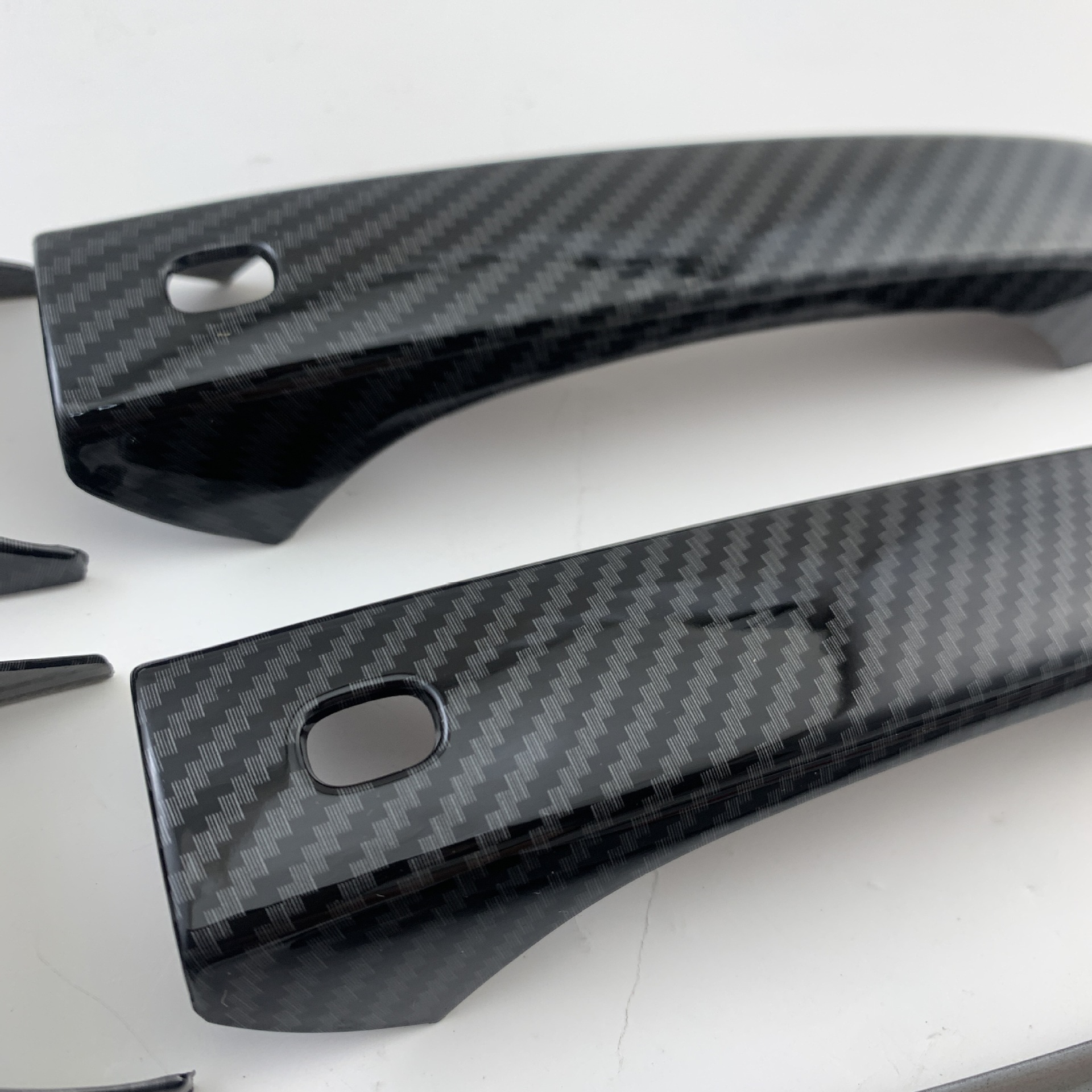 Tags: automotive exterior accessories, car handle cover trim, carbon fiber door handles, door handle protector, glossy black handles, vehicle styling kit