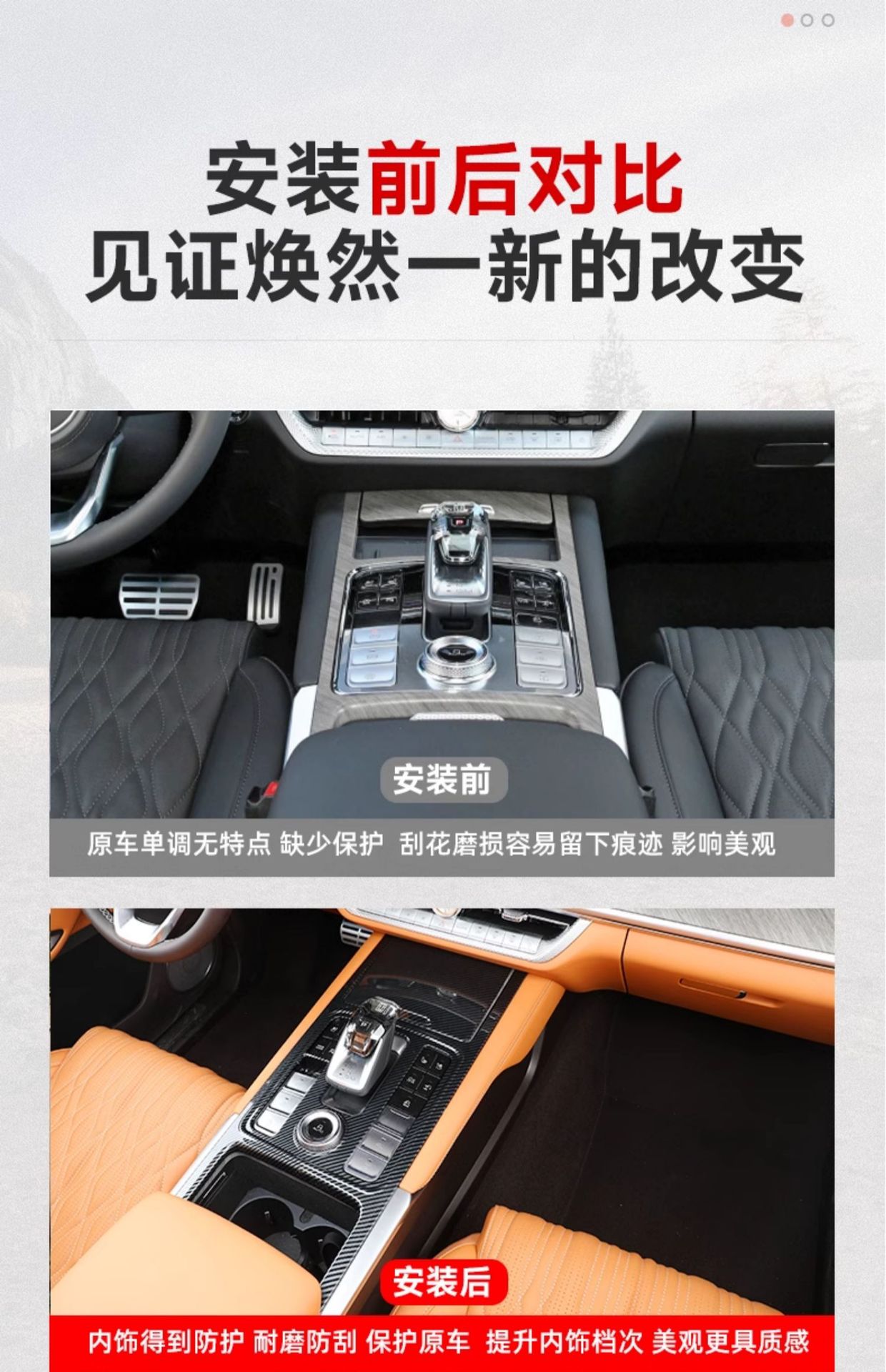 - Premium Material: Crafted with high-quality ABS material featuring a sleek carbon fiber texture for a sporty and luxurious interior look.