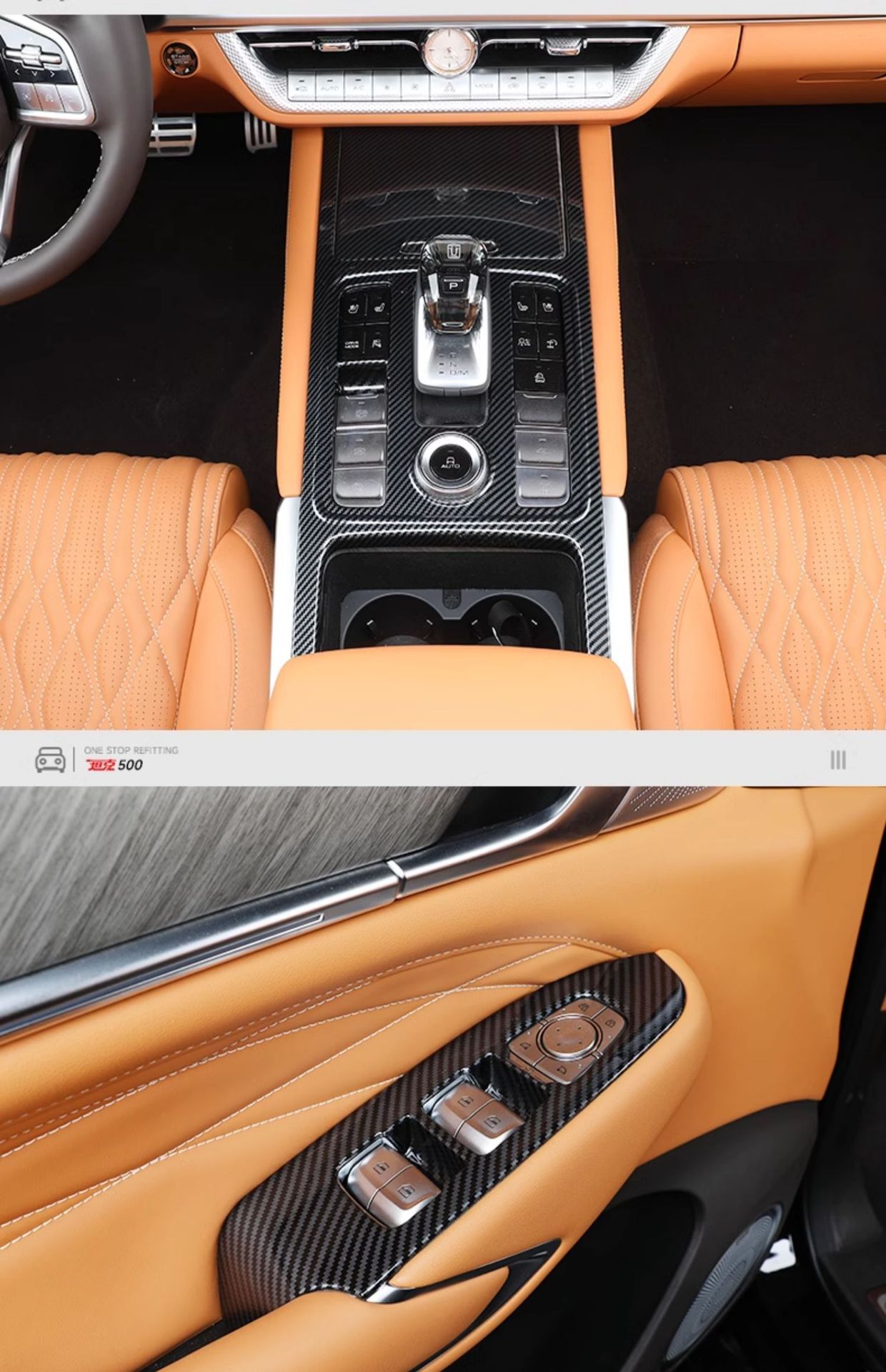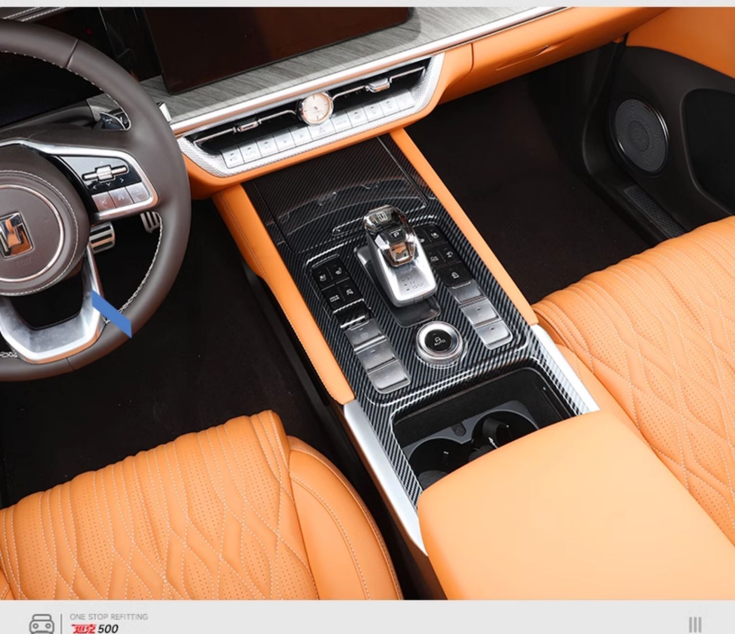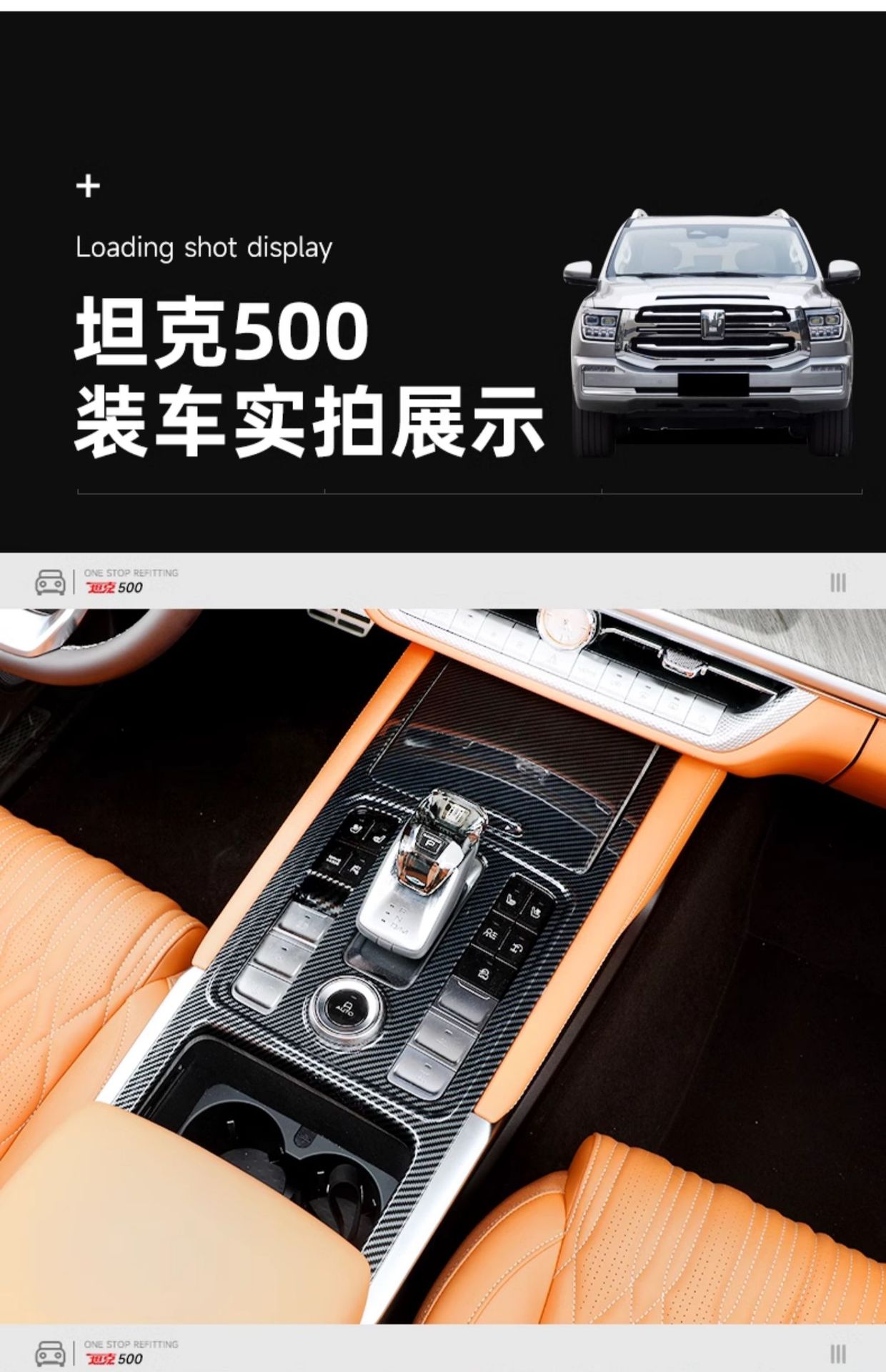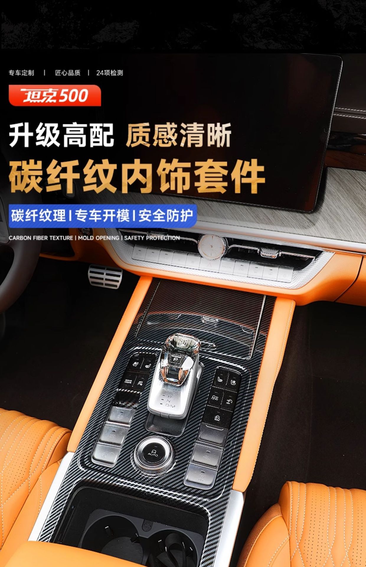 Upgrade your Tank 500 Hi4-T with carbon fiber texture interior trims. Easy-to-install decorative covers for center consoles, air vents, and cup holders.