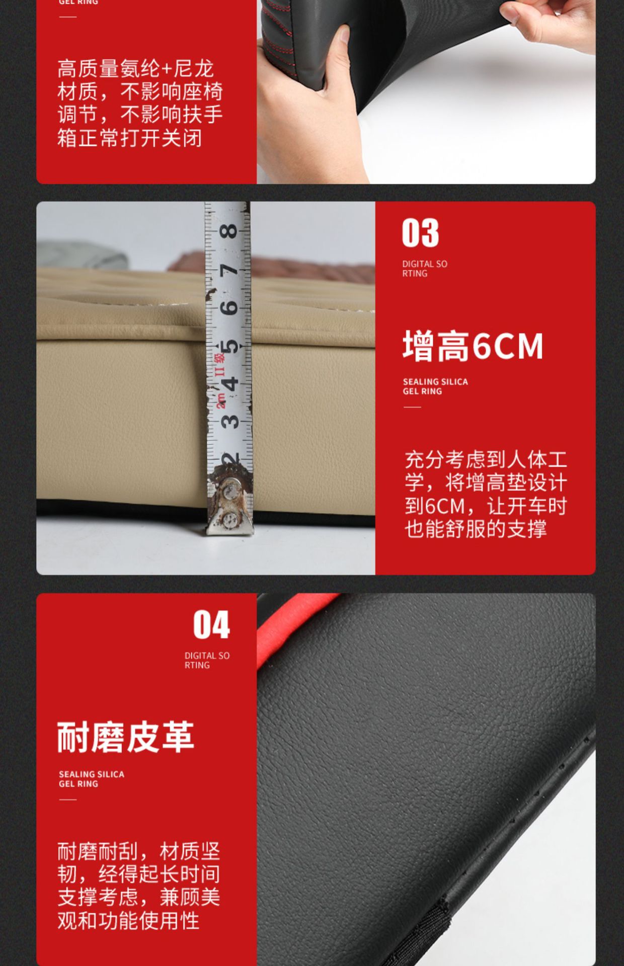 - Elevates the armrest height to offer better ergonomic support for the driver during long trips.