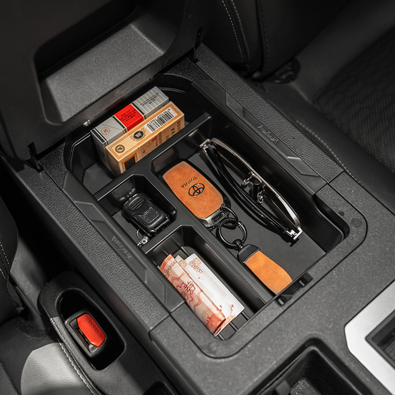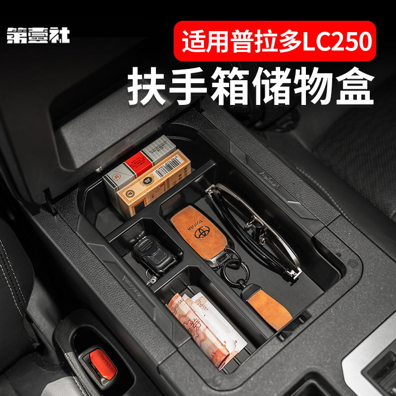 Tags: armrest storage box, automotive interior storage, car console divider, center console tray, Prado 2024 accessories, Toyota Prado interior organizer