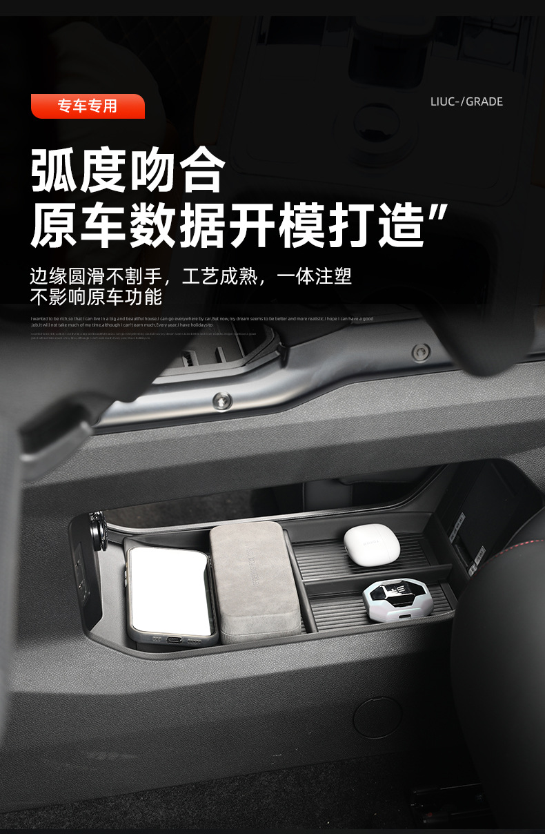 Maximize your vehicle storage with this center console organizer for Jetour Traveler and Shanhai T2. Durable ABS tray with non-slip mats for a tidy interior.