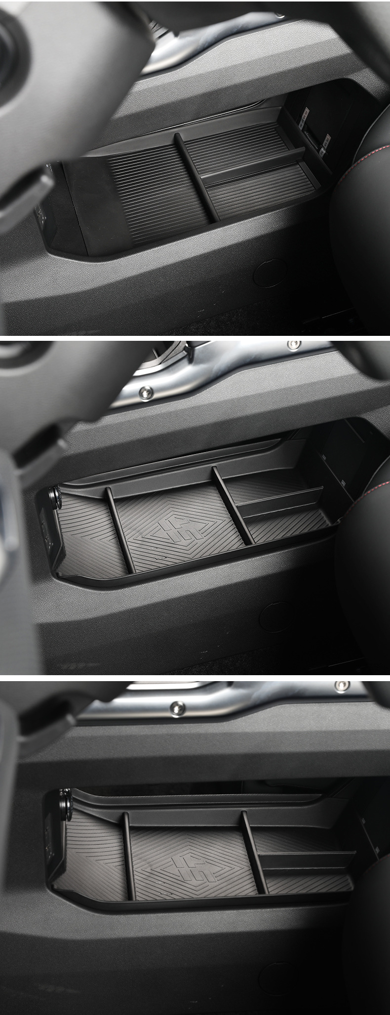 - Non-Slip Liners: Equipped with removable rubber mats that prevent items from sliding or rattling while driving on rough terrain.