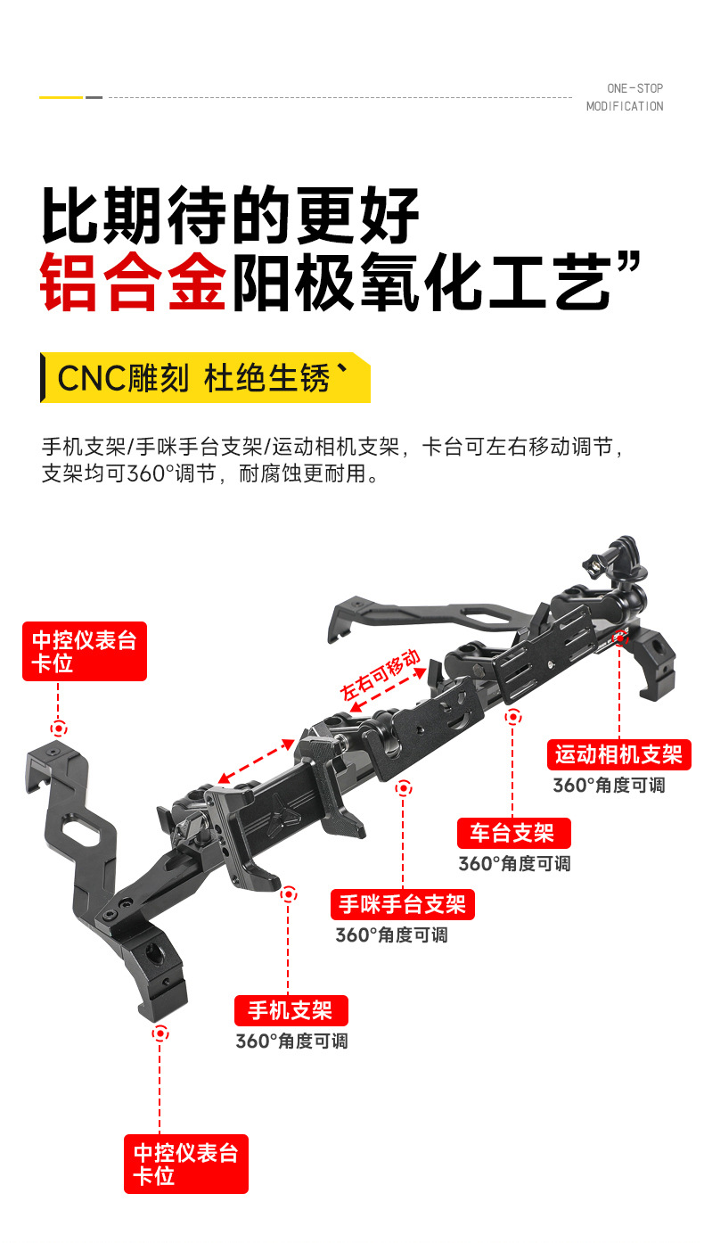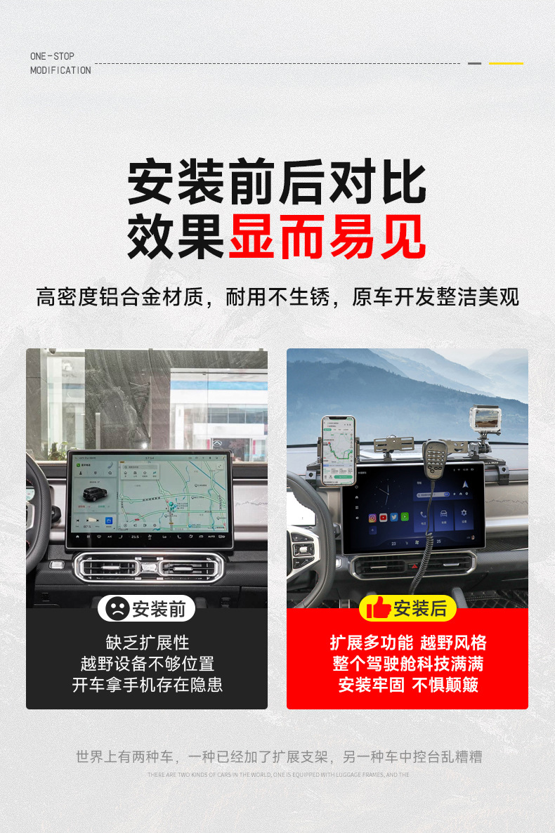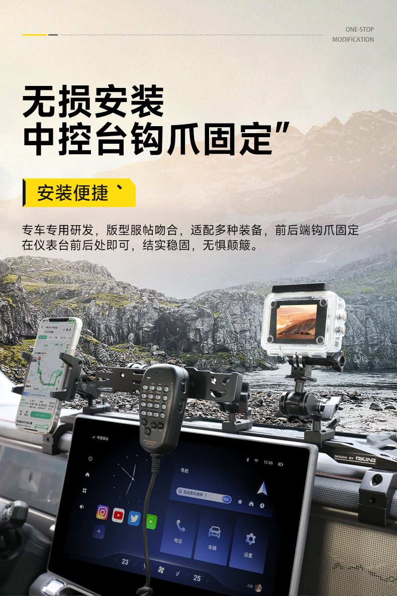 - Versatile multi-functional mount supports simultaneous holding of mobile phones and walkie-talkies for off-road communication.
