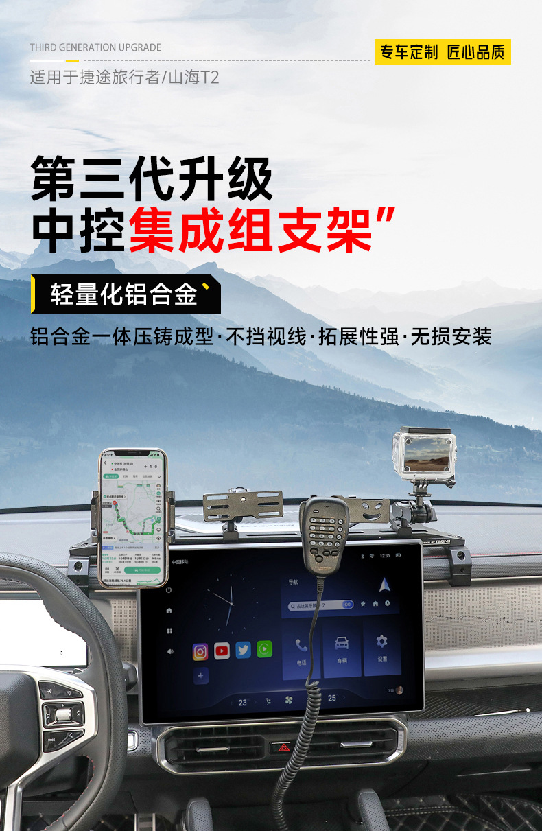 Upgrade your Jetour Traveller T2 with this multi-functional dashboard rail mount. Securely holds phones and walkie-talkies for enhanced off-road utility.