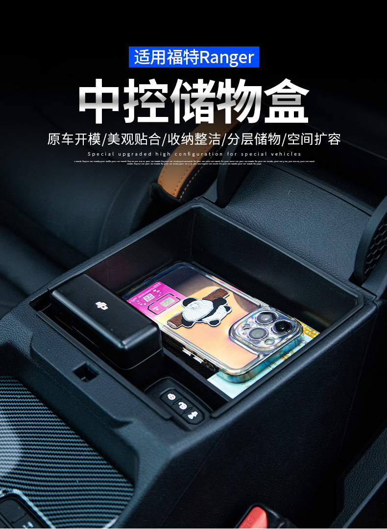 Tags: armrest storage box, center console insert, console organizer, glove box secondary storage, ranger tray divider, truck interior accessories