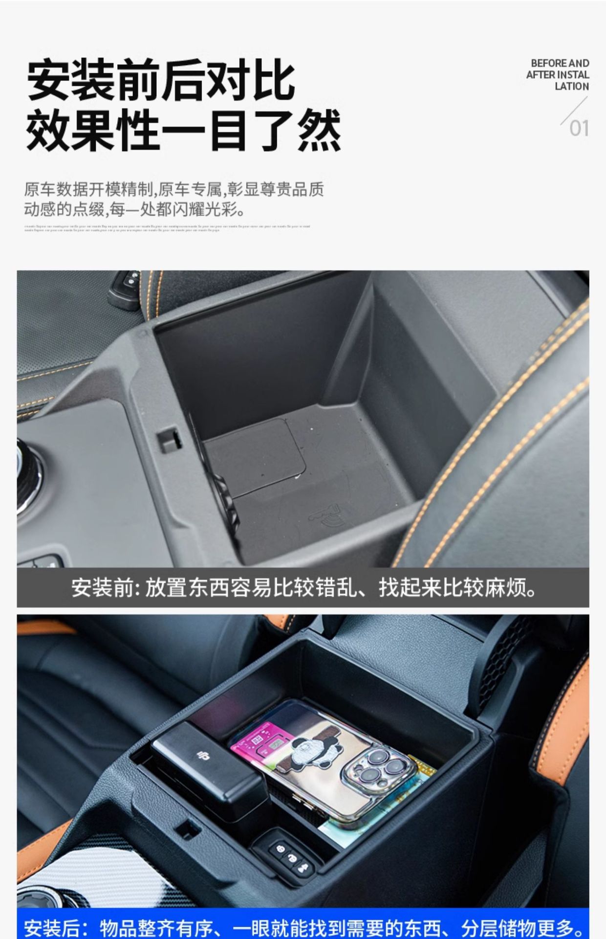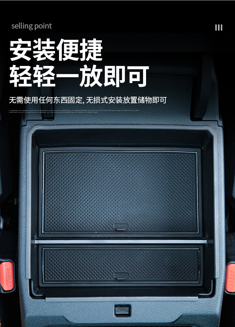 - Easy drop-in installation requires no tools or modifications to the original vehicle interior structure.