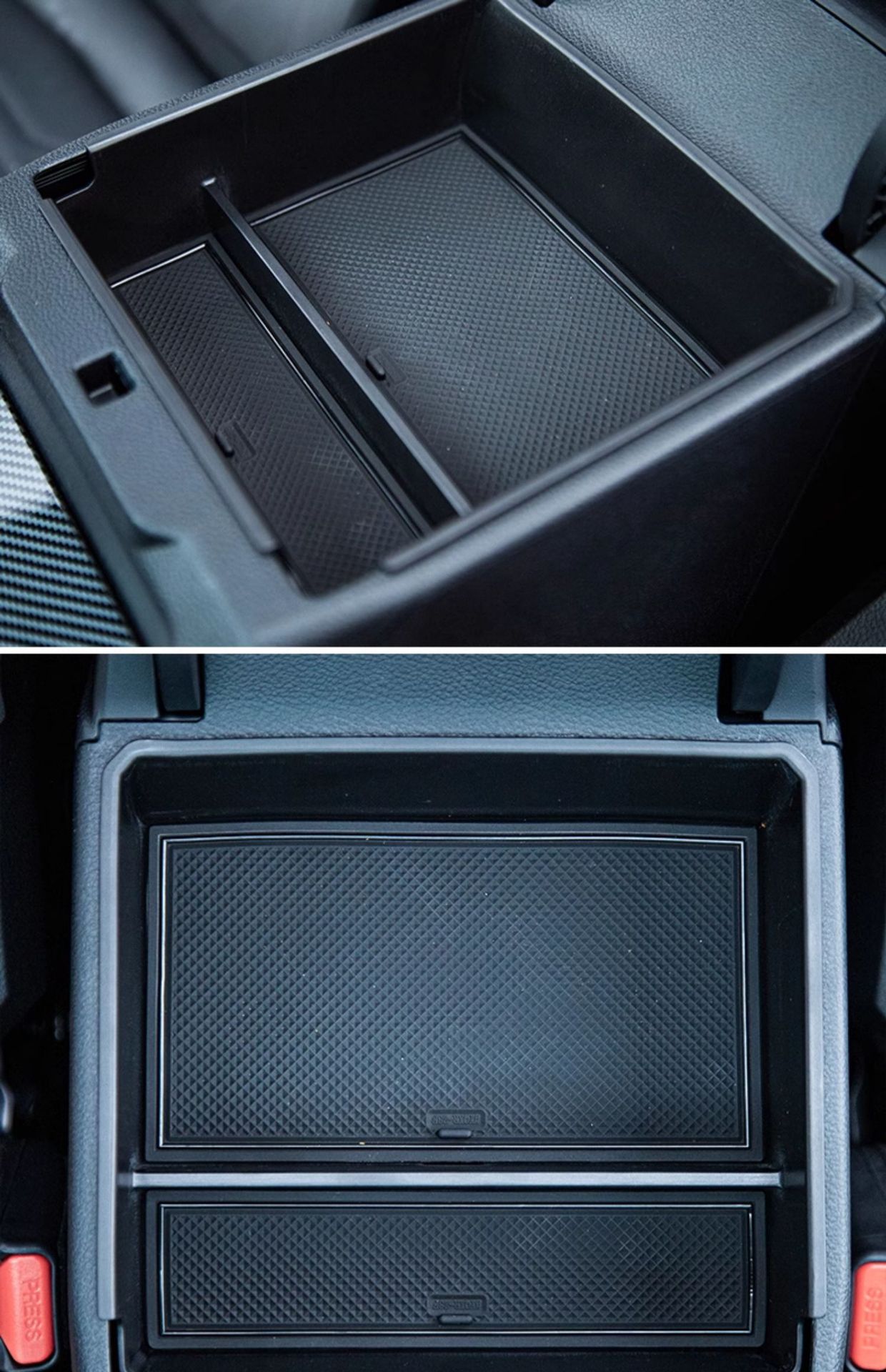 - Maximizes storage utility by adding a secondary level to the deep armrest compartment for better organization.
