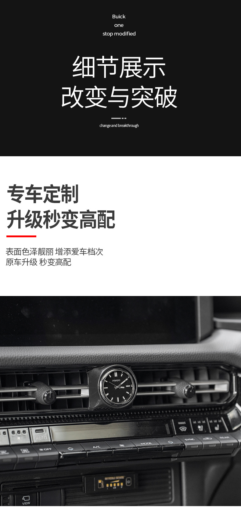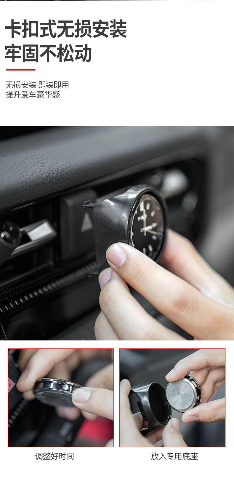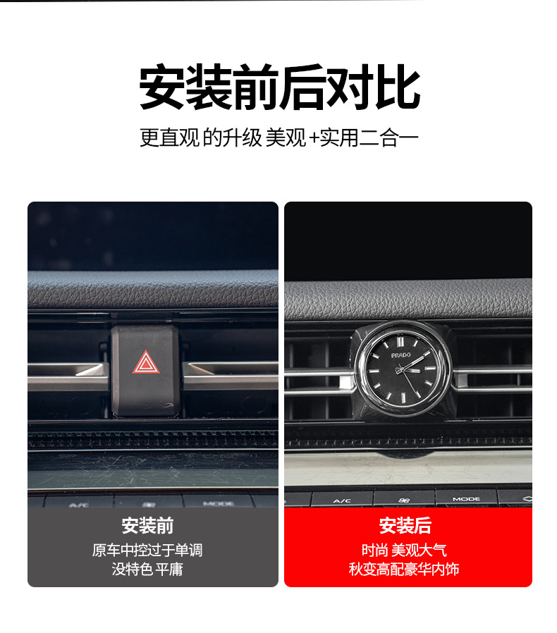- Integrated Design: Features a precise quartz clock embedded within the air vent hazard switch panel for a premium interior upgrade.