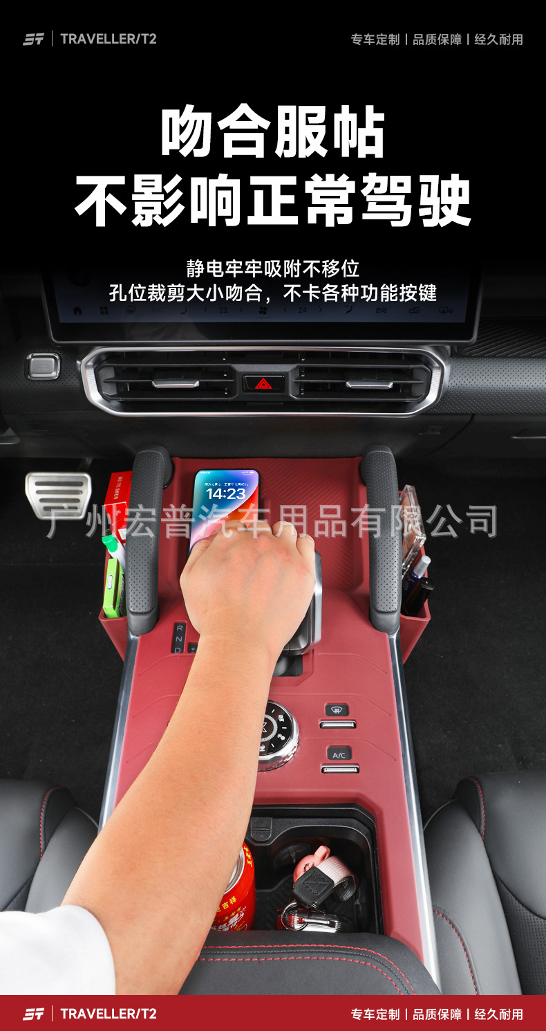 - Custom fit design specifically for the Jetour Traveller Shanhai T2 center console and wireless charging area.