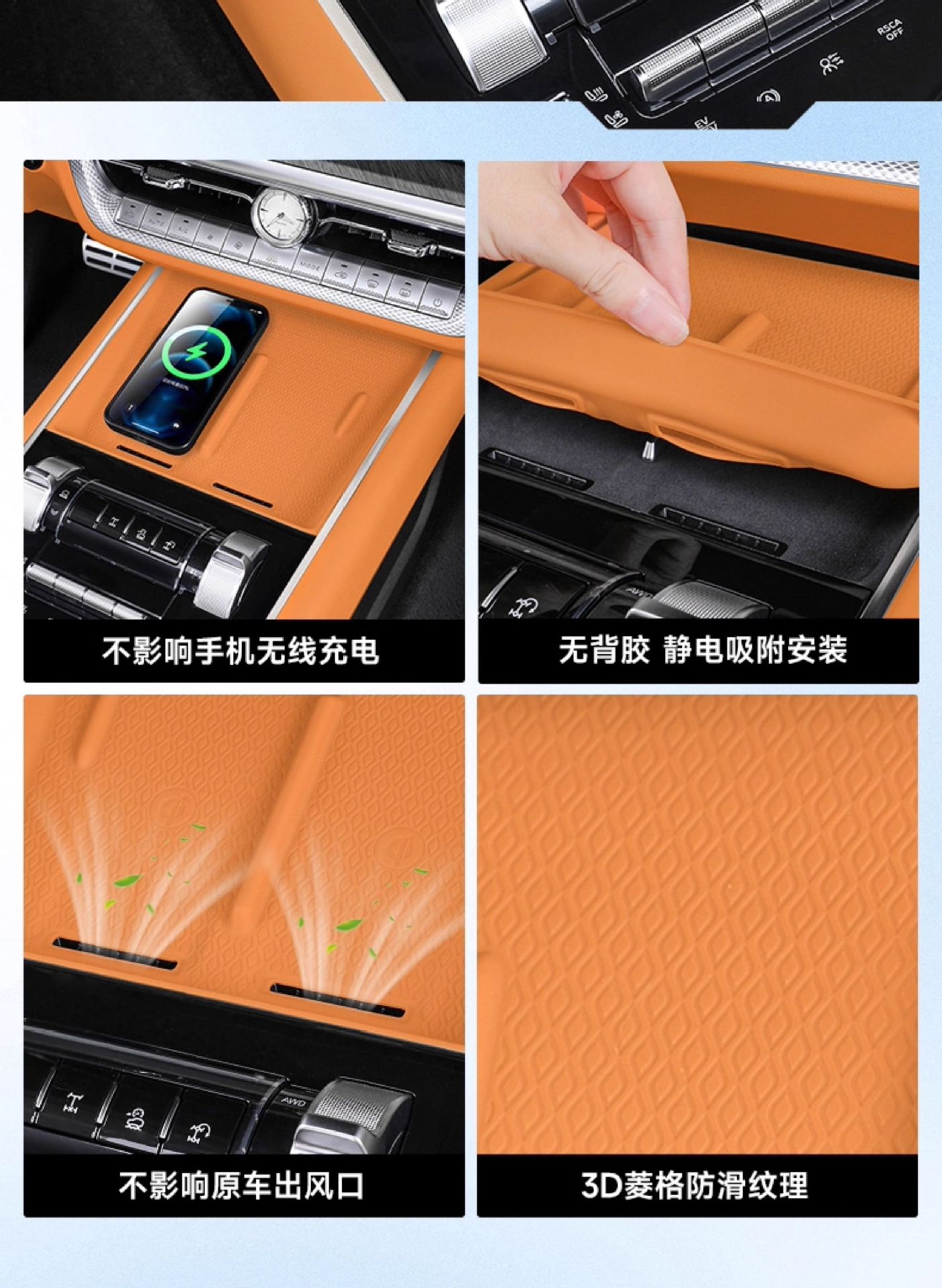 Tags: anti-slip console tray, car interior tray, center console organizer, dashboard storage bin, silicone storage box, vehicle cabin storage