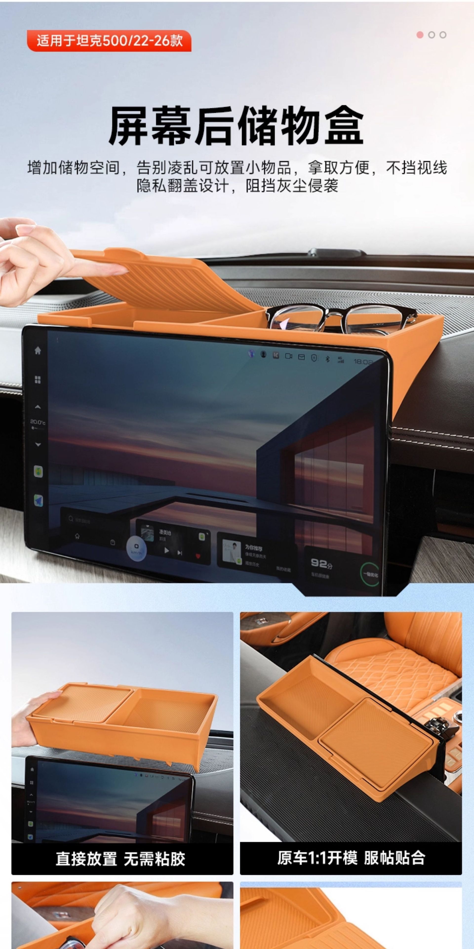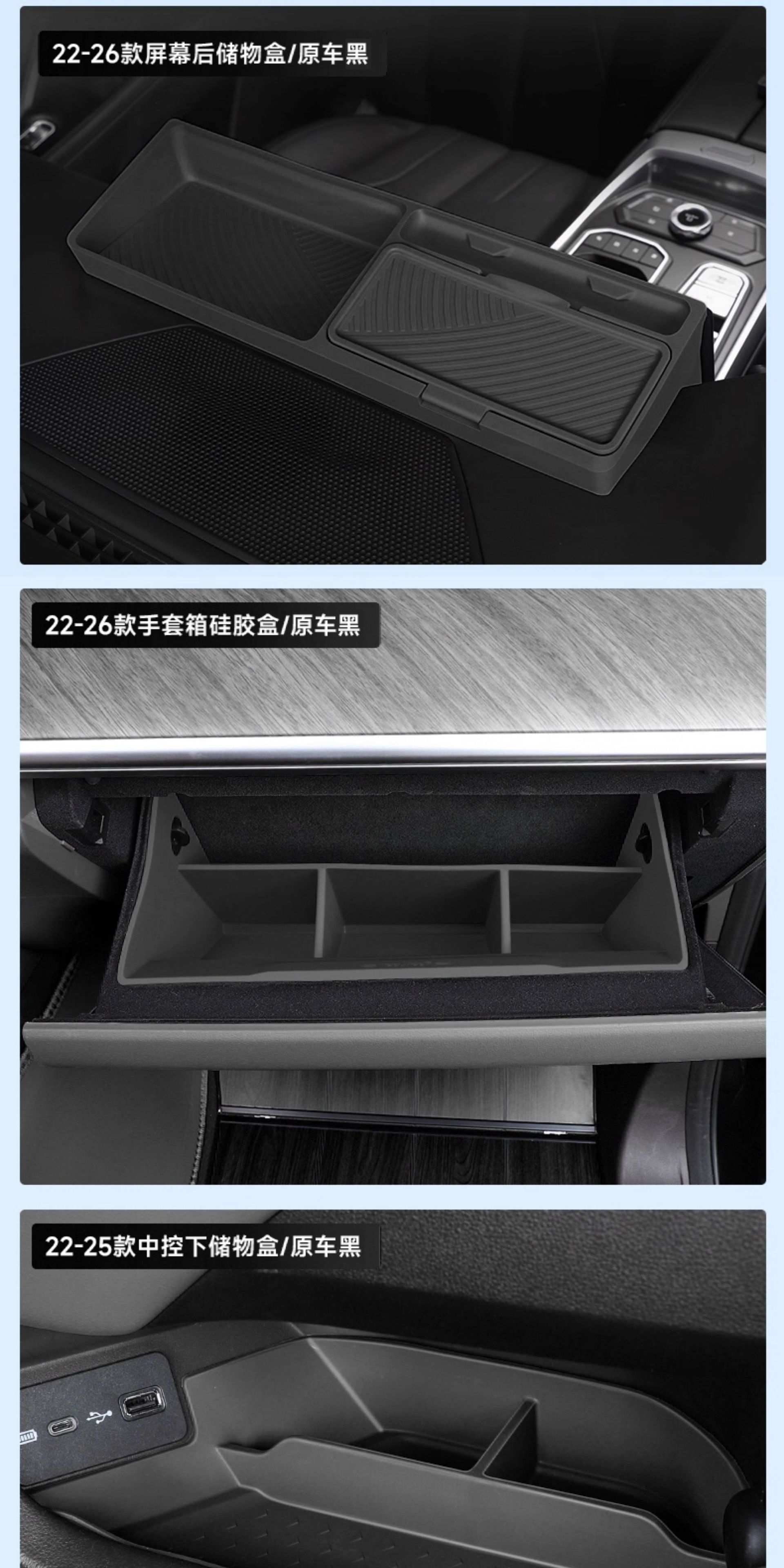 - Custom-fit secondary storage tray designed specifically for the center console area to maximize cabin organization.