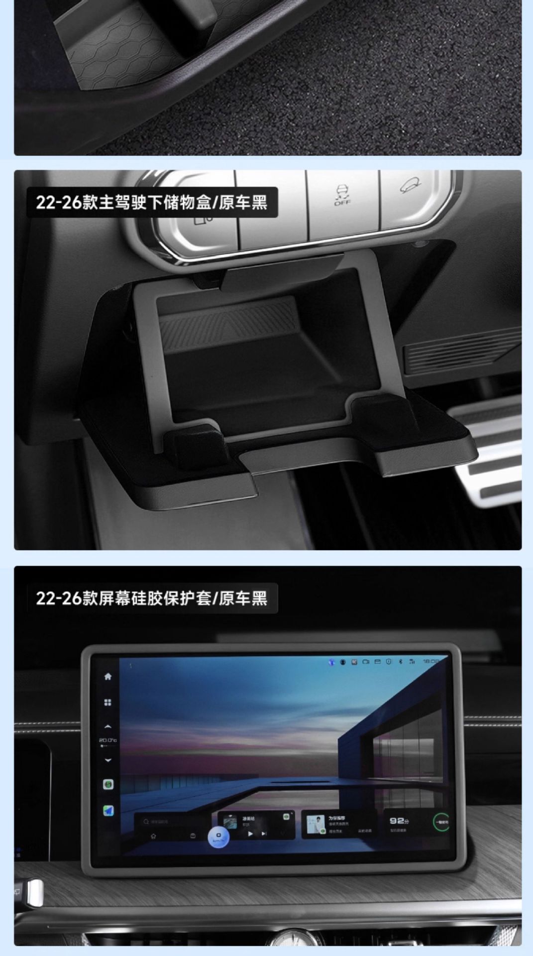 - Direct drop-in installation requiring no tools or modifications to the vehicle dashboard or console structure.