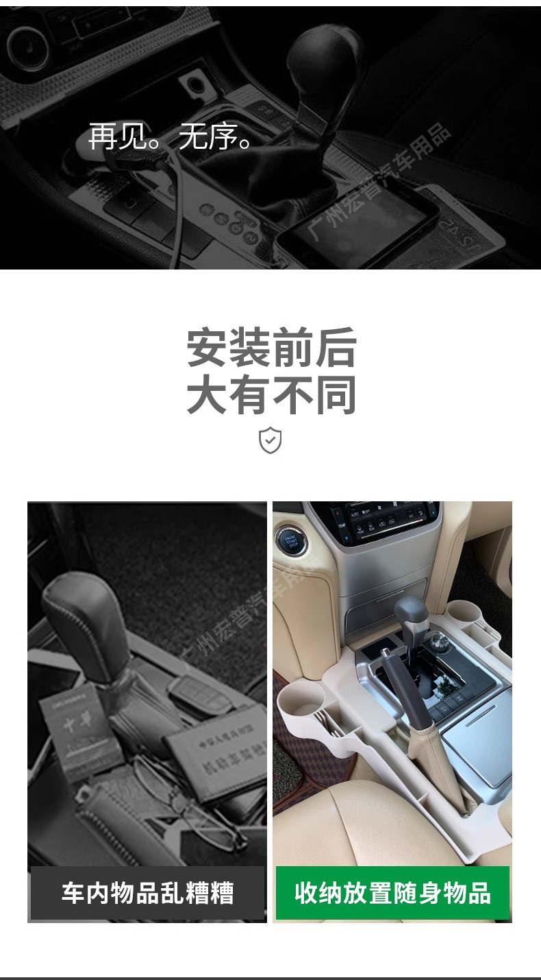 - Maximizes interior storage space by utilizing the seat gap and console area for organized placement of small essentials.