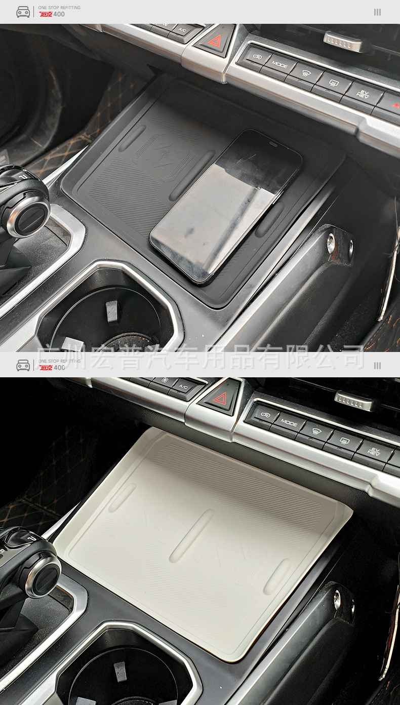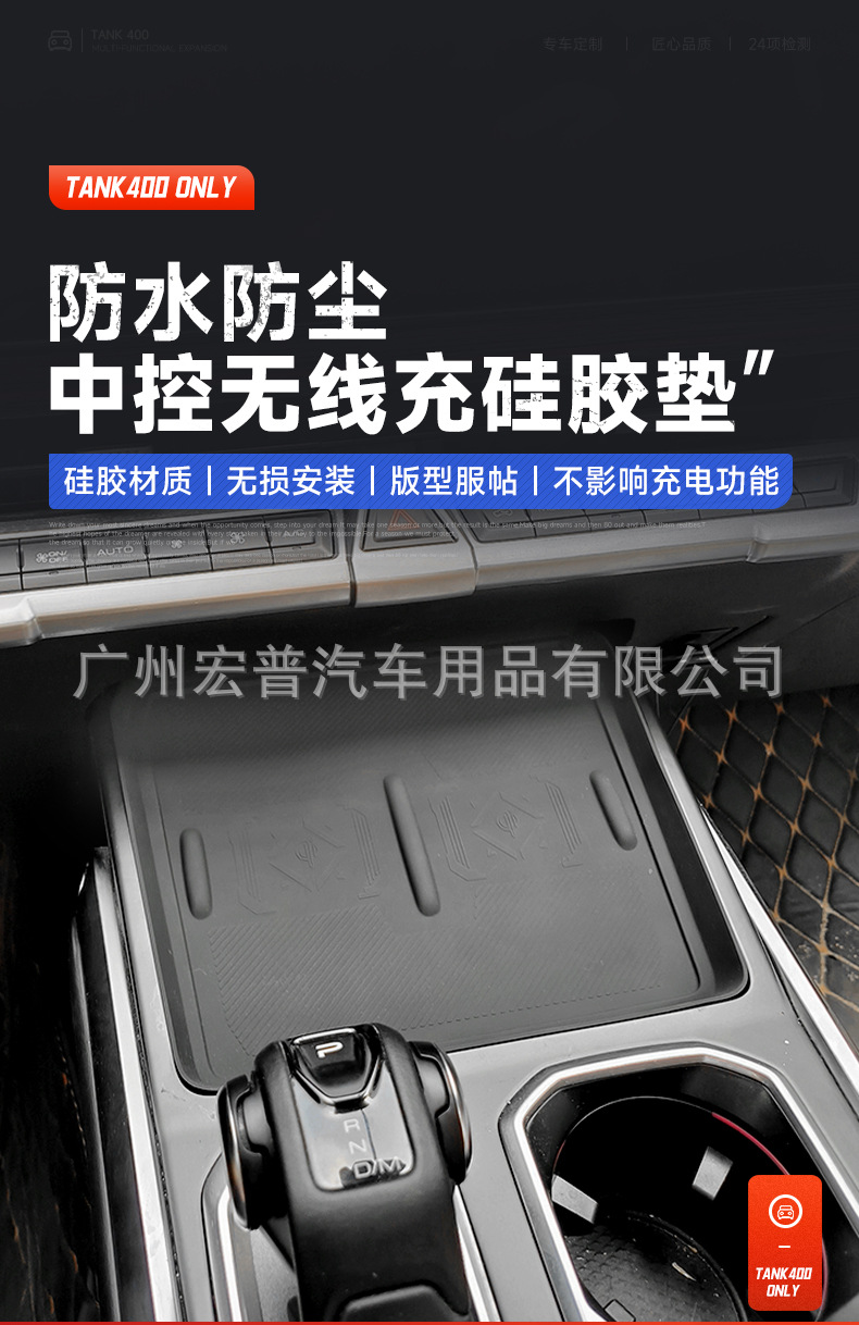 Upgrade your Tank 400 Hi4-T with these premium TPE silicone mats. Protect your center console, cup holders, and wireless charging area from spills and noise.
