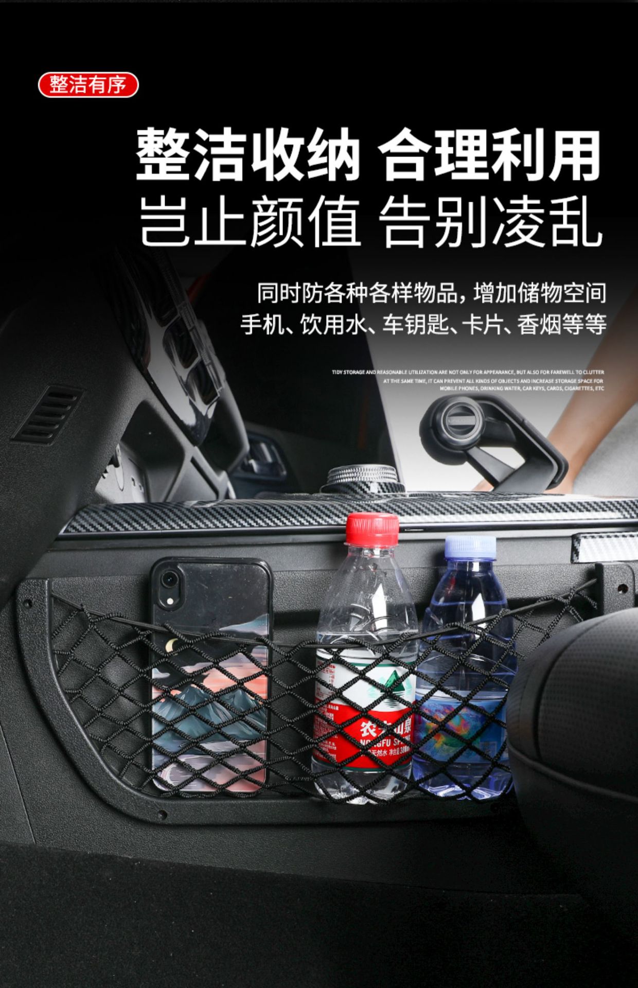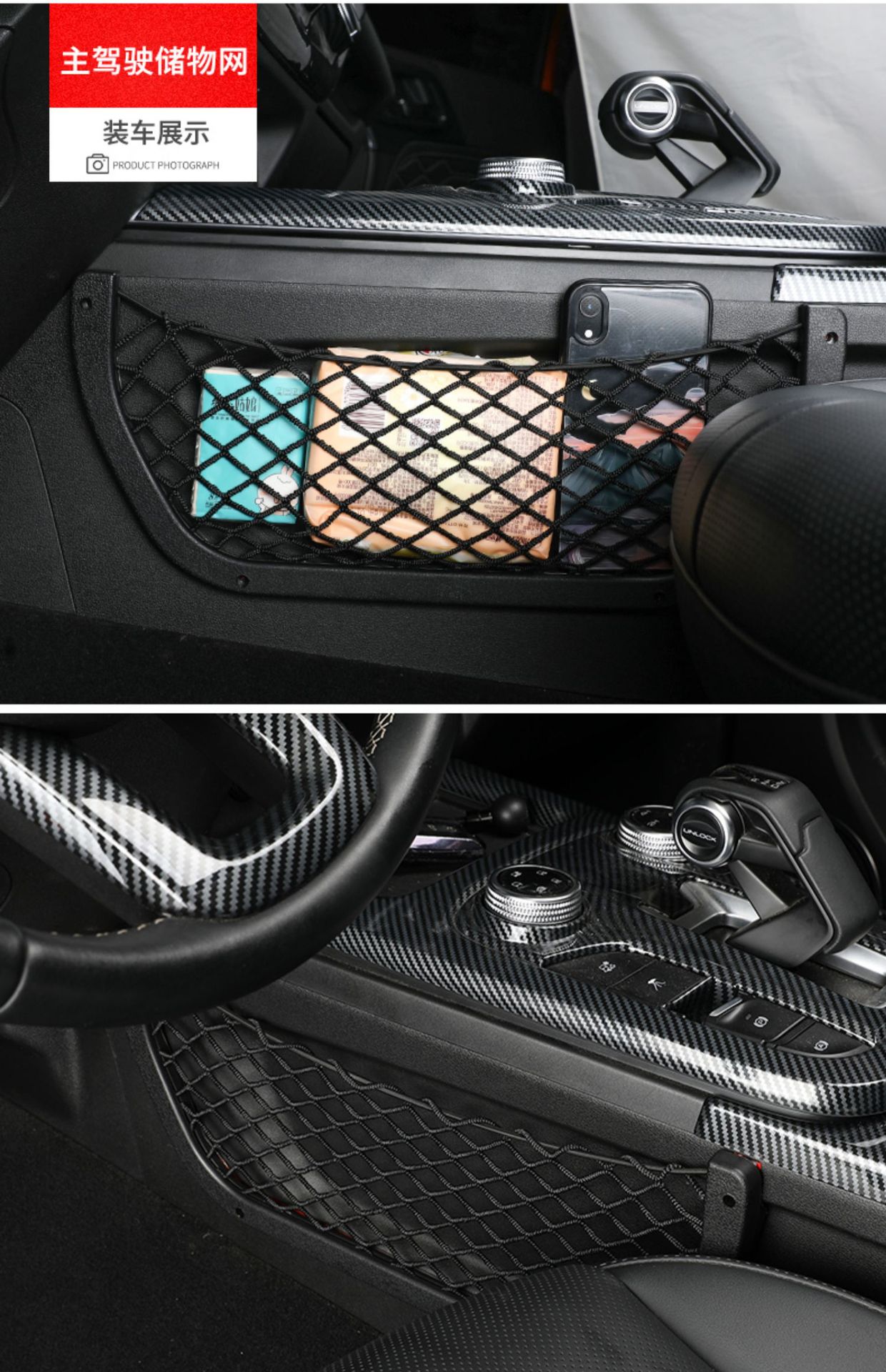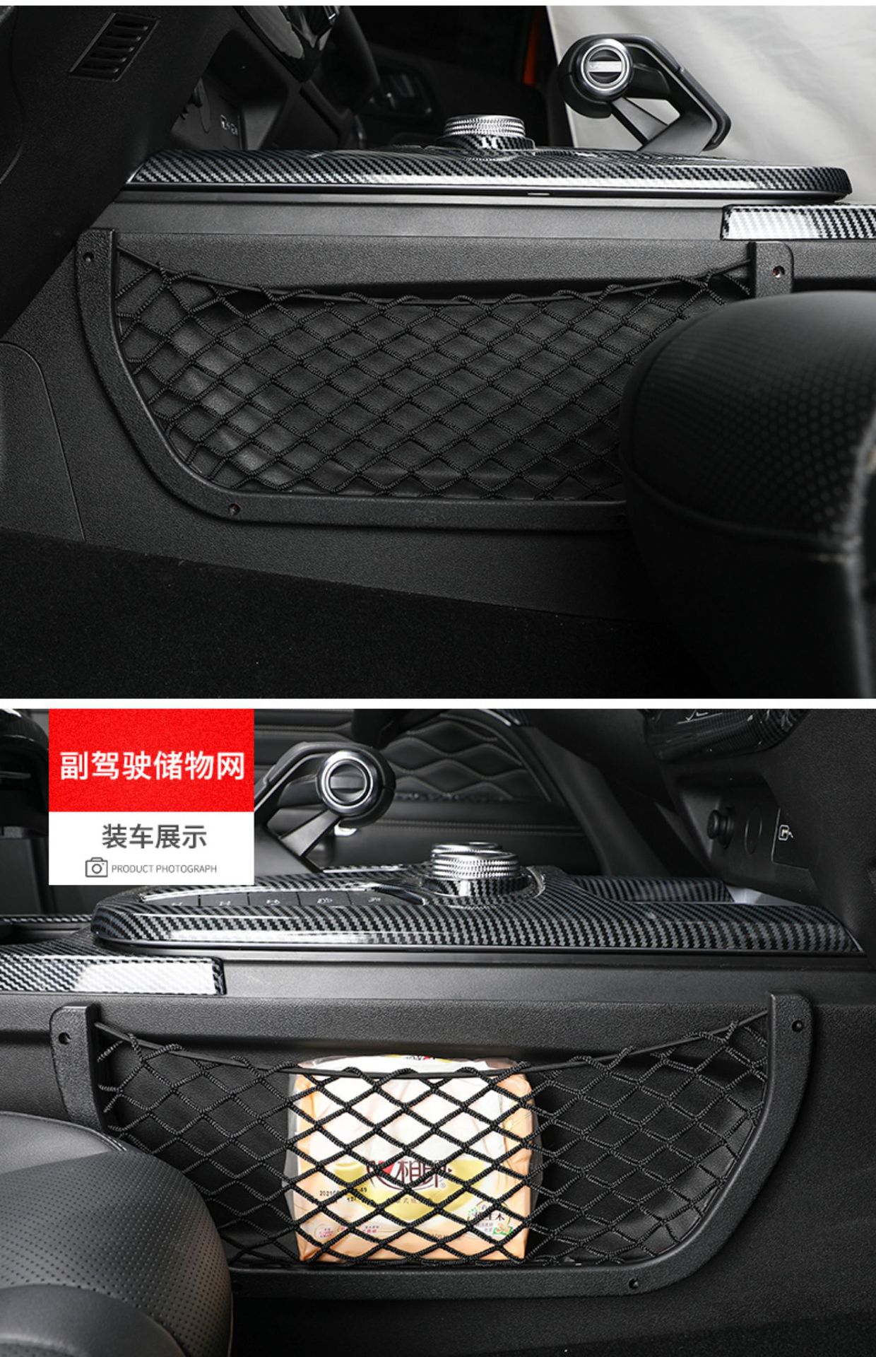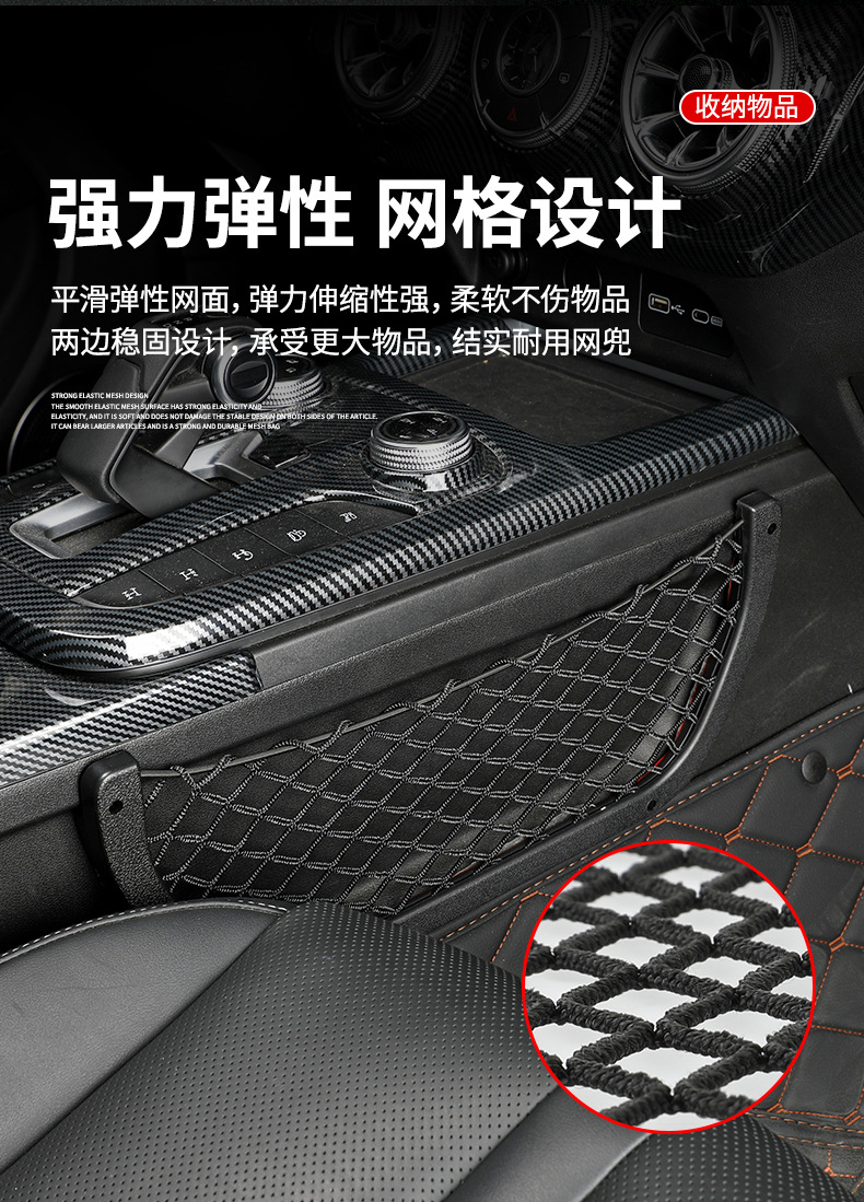 Tags: automotive interior upgrade, cabin storage solution, car seat gap filler, cargo net bag, console side pocket, interior organizer, mesh storage net