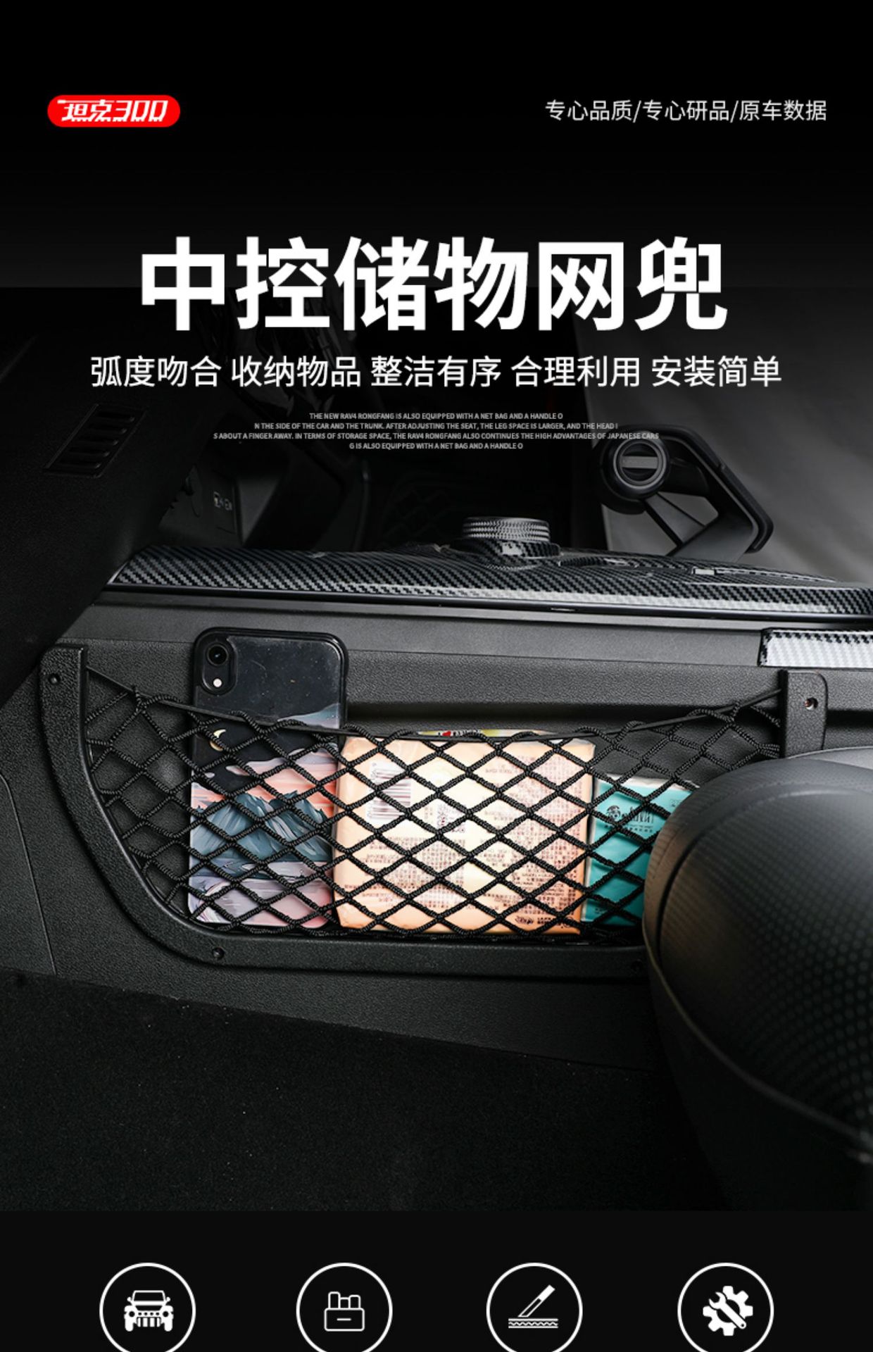 Upgrade your Tank 300 interior with this durable center console storage net. Easy adhesive installation provides extra space for phones, keys, and accessories.