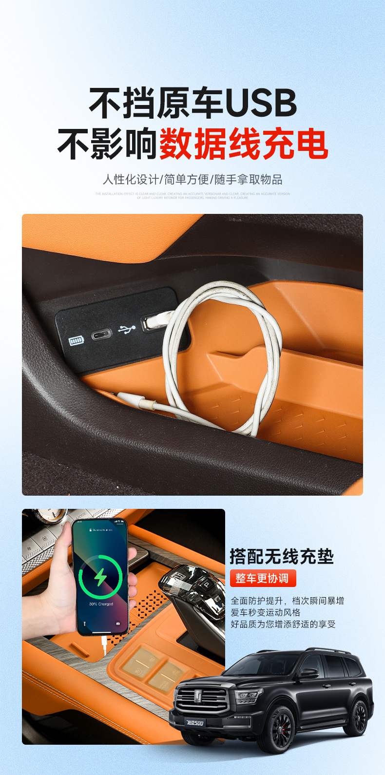 Upgrade your Tank 500 Hi4-T with this silicone center console under-storage box. Durable, anti-slip, and easy to clean for a clutter-free and organized interior.