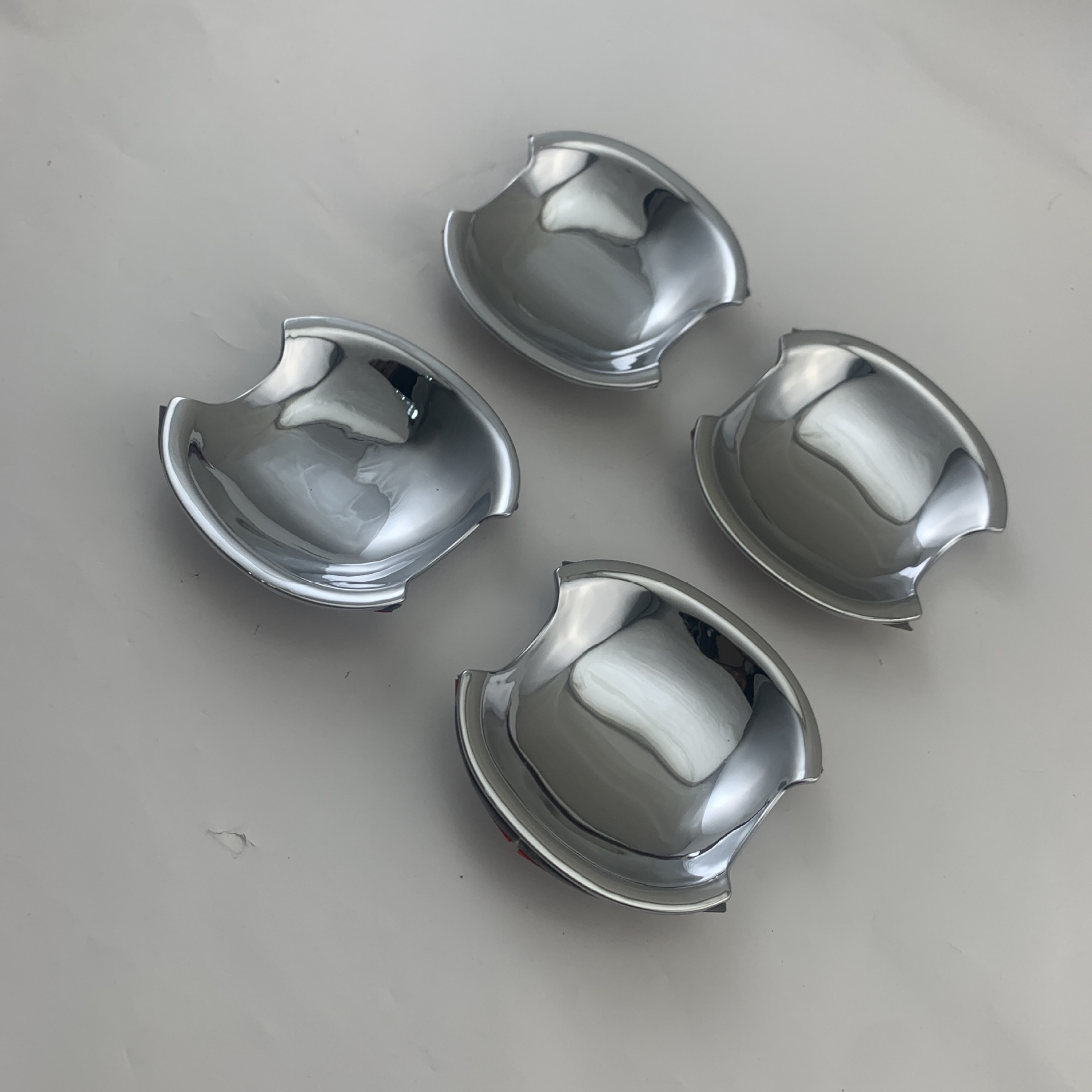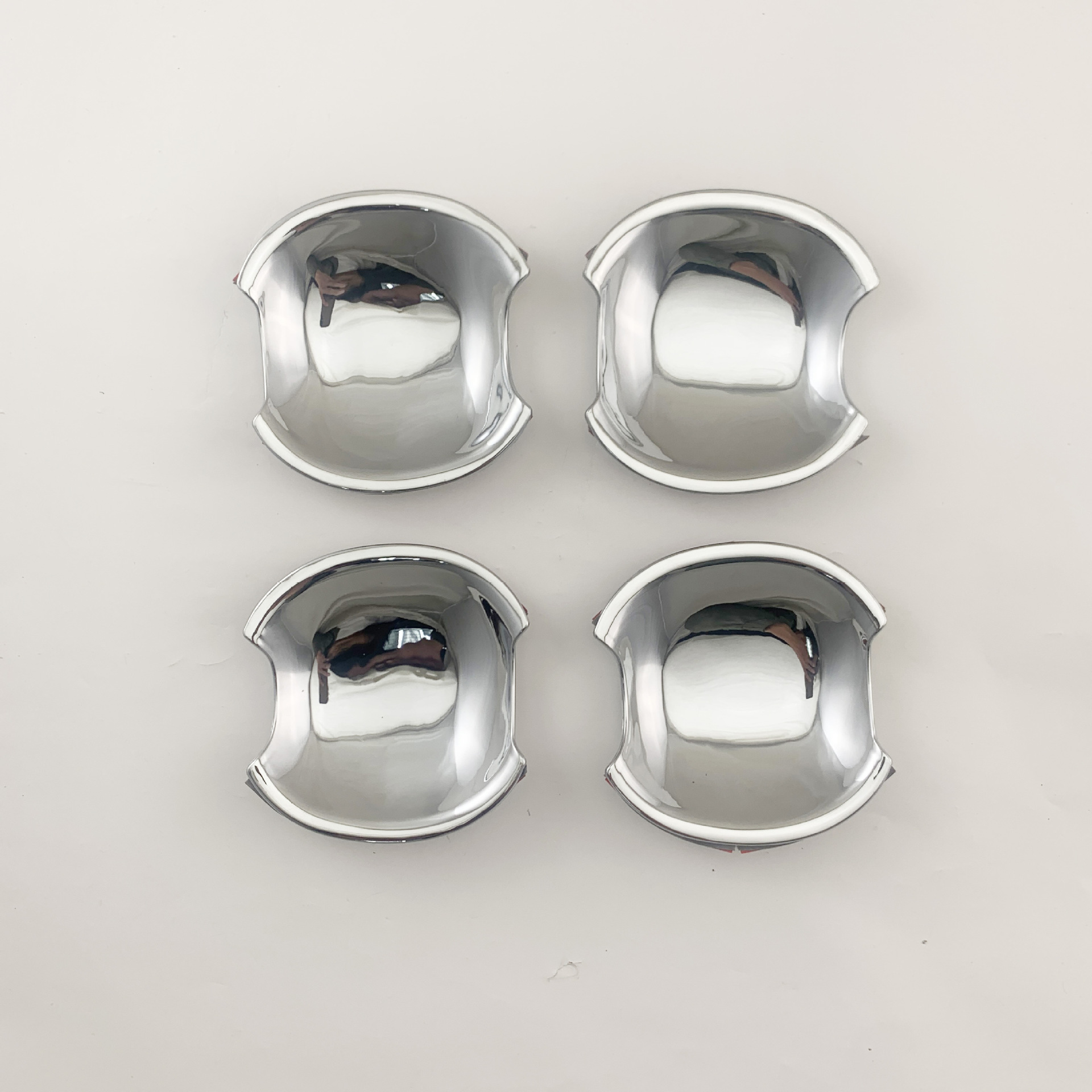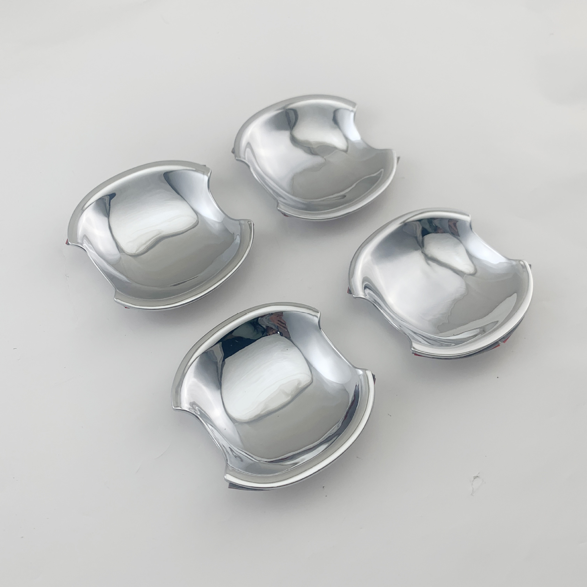 Tags: automotive exterior accessories, car door protector, chrome garnish, door handle bowl cover, entry guard plates, handle recess guard, outer door trim