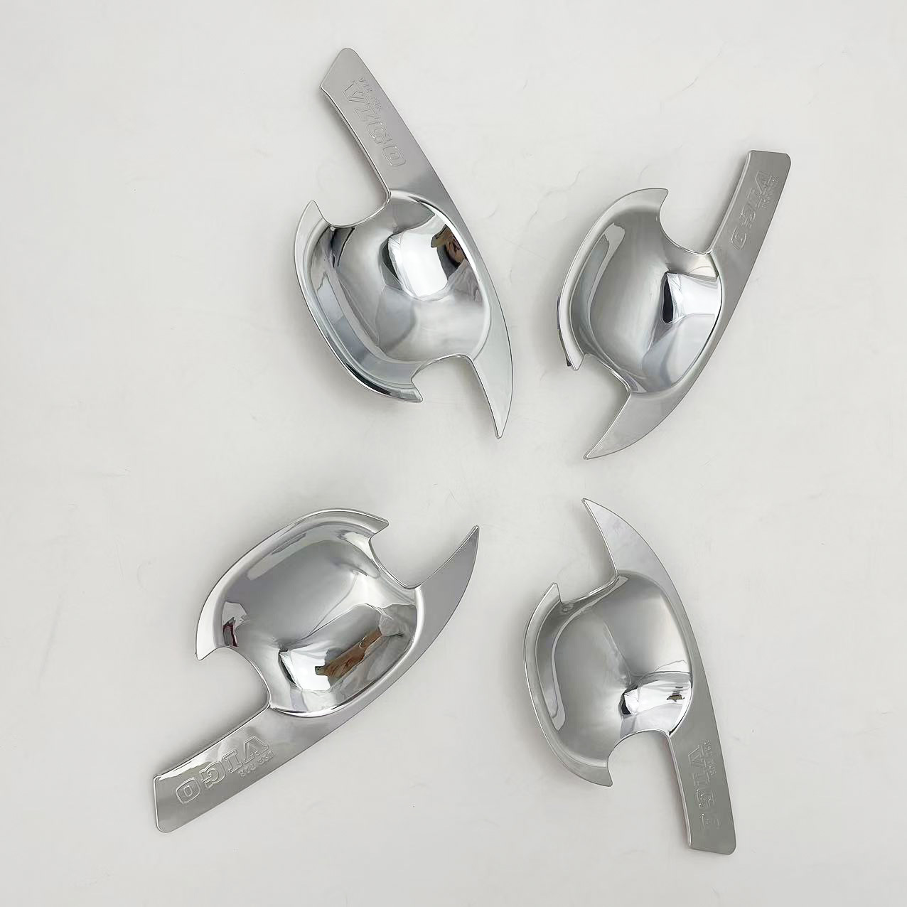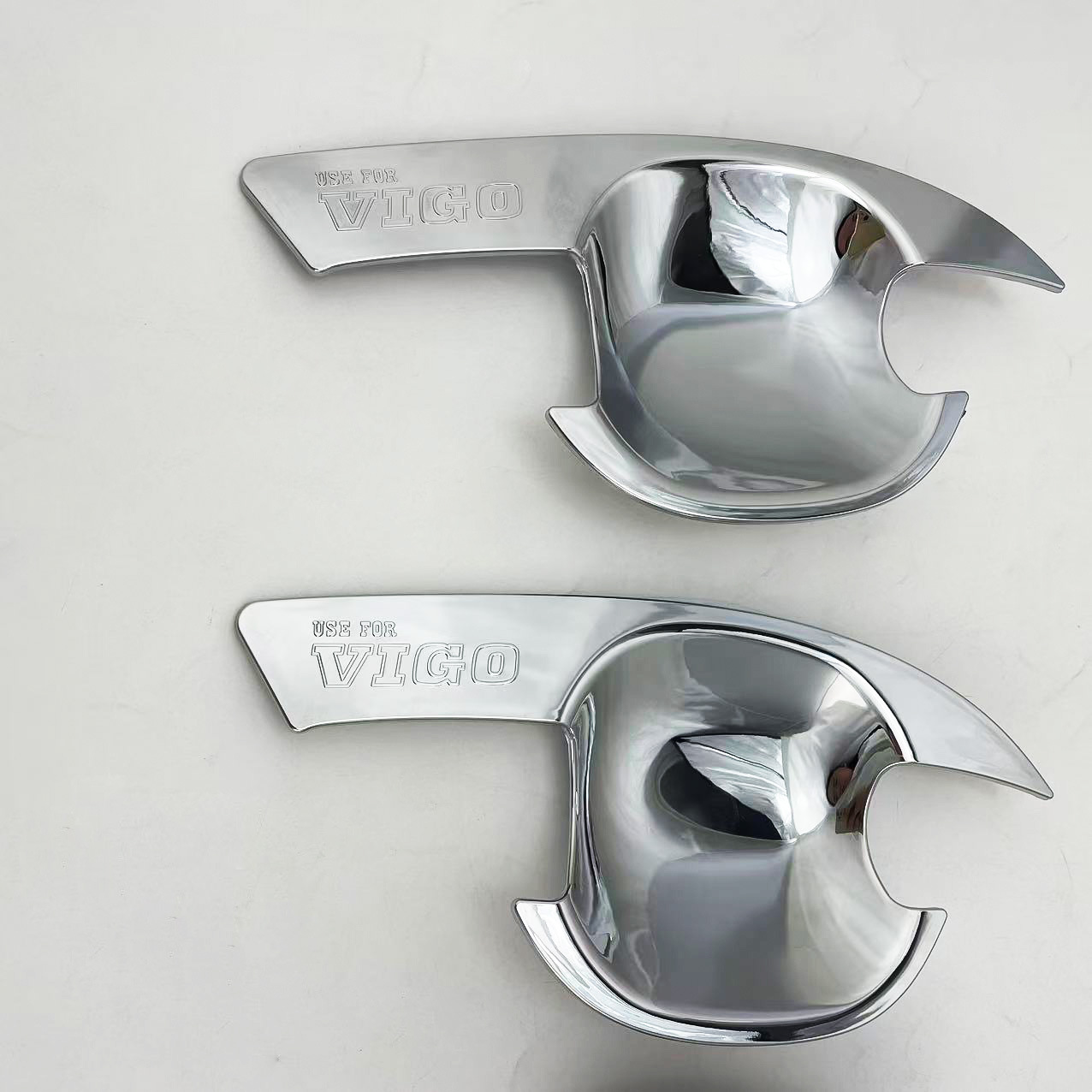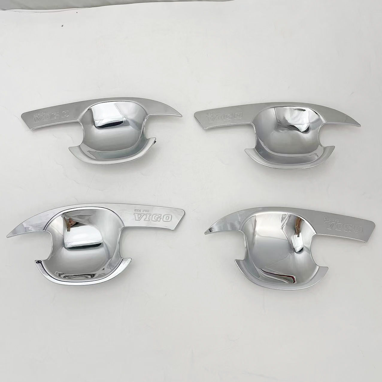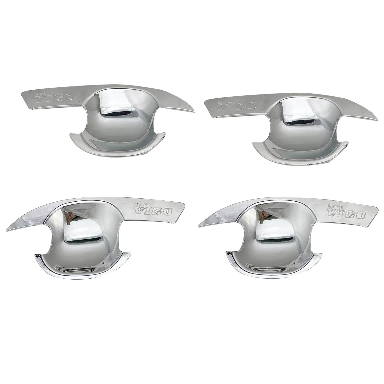 Tags: automotive chrome decoration, car door protector, chrome exterior trim, door handle bowl cover, handle cavity guard, Hilux Vigo accessories