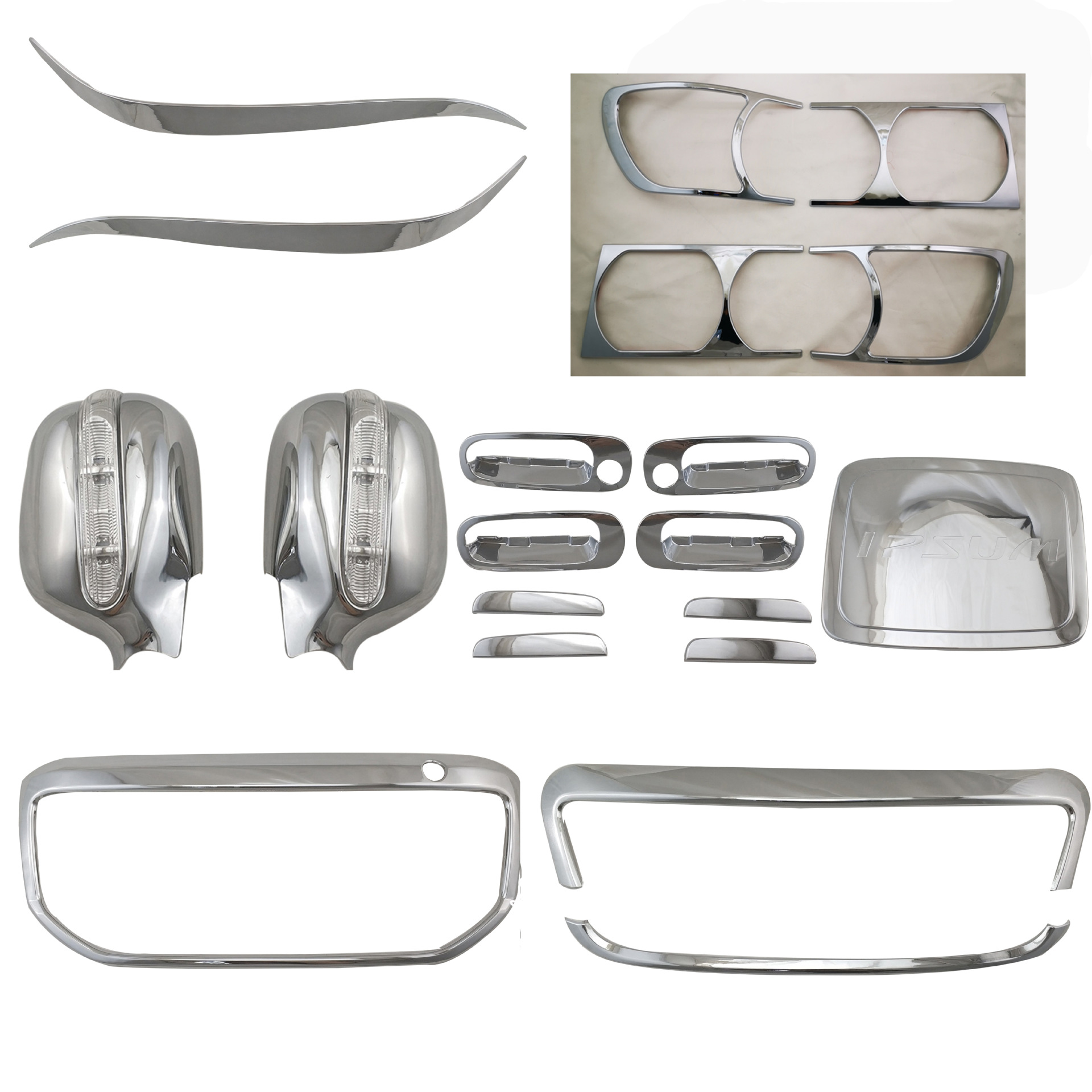 Tags: automotive styling, car exterior accessories, chrome trim kit, door handle covers, Light Shade Set, mirror protectors, Toyota Ipsum Parts