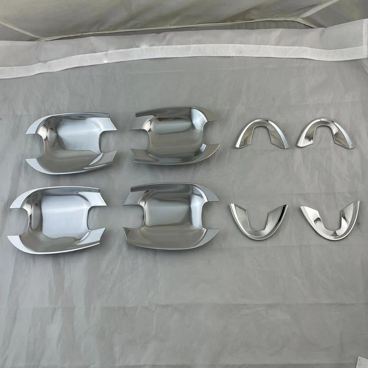 Tags: automotive styling, car door protector, chrome trim, door bowl cover, door handle guard, exterior accessories, scratch protection