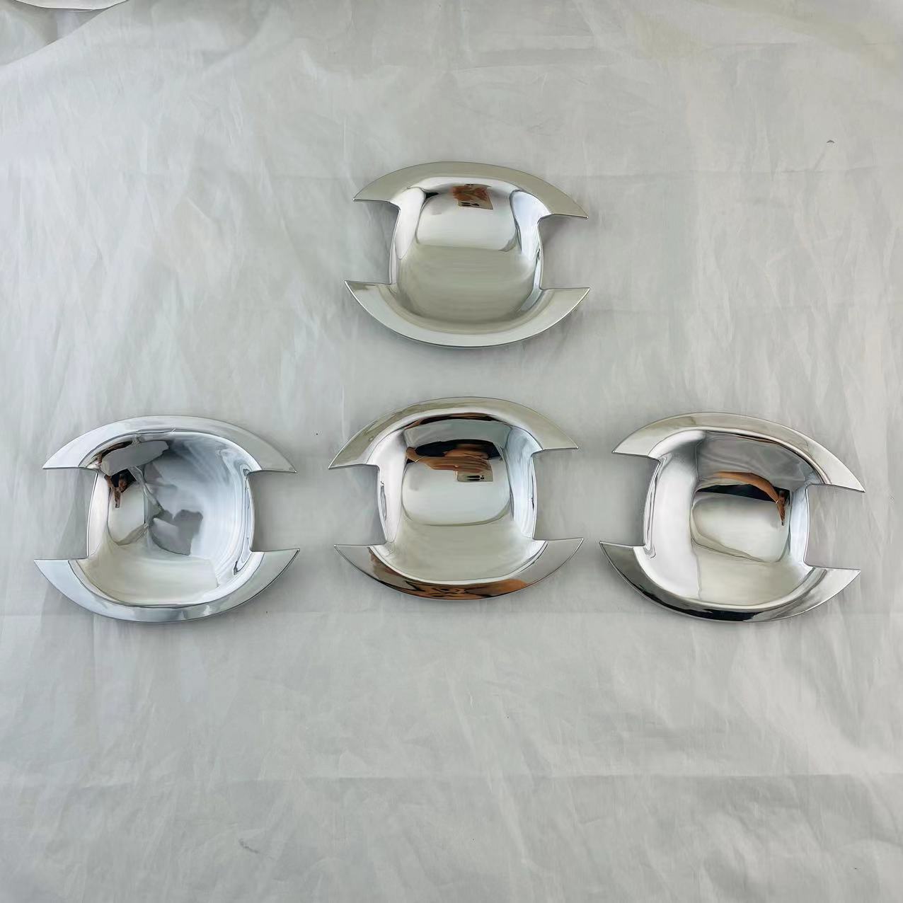 Tags: automotive exterior styling, car door protector, chrome door bowl trim, door handle bowl cover, exterior trim kit, handle recess guard, scratch guard