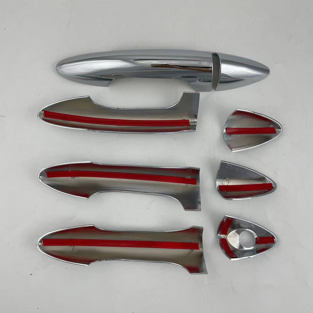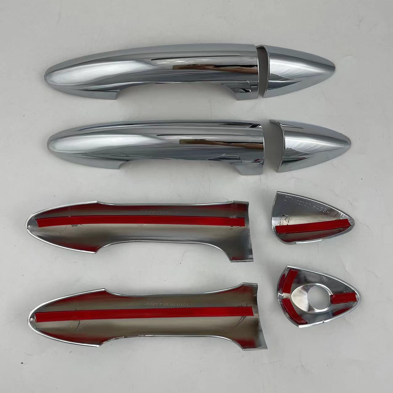 Tags: accent handle shell, car exterior accessories, car styling accents, chrome trim, door handle cover, door handle guard, handle protector