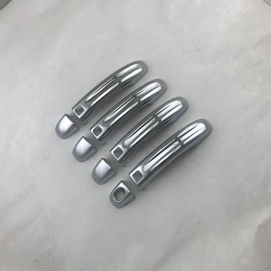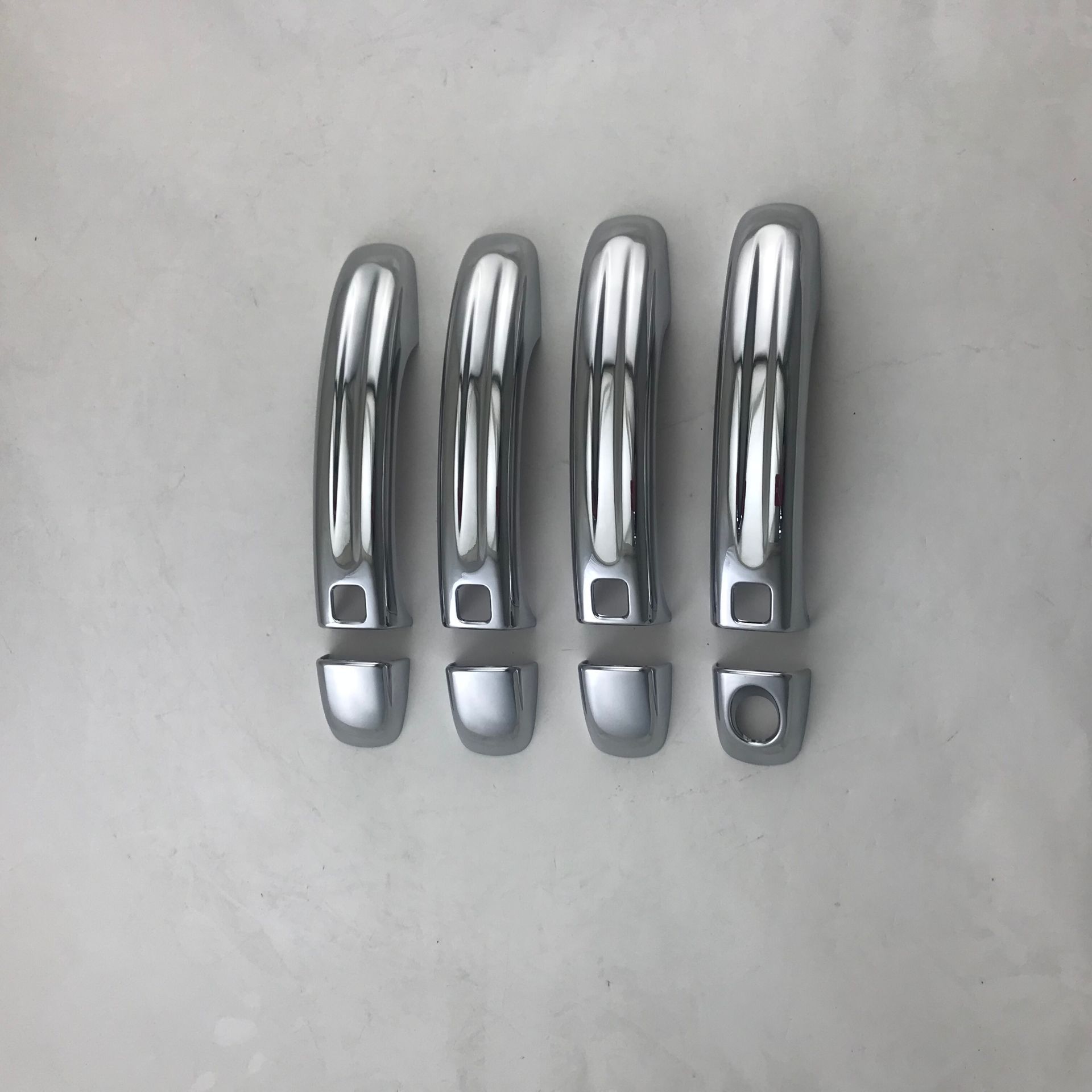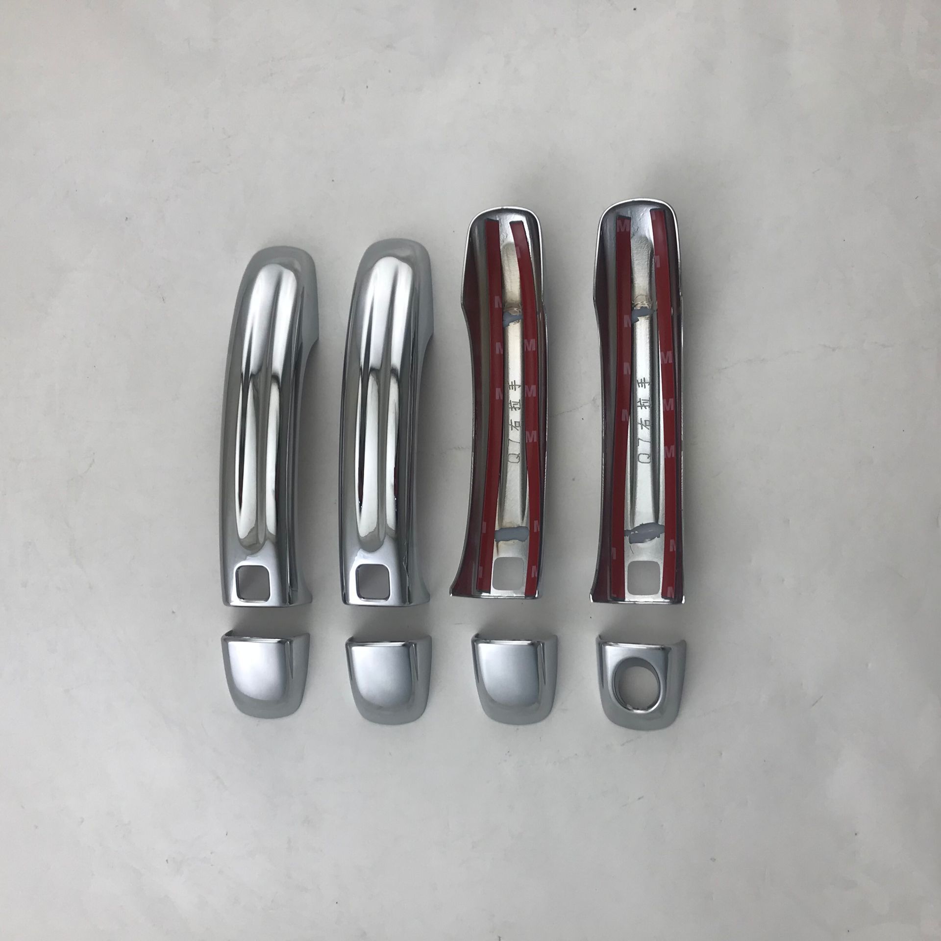 Tags: auto exterior accessories, chrome car trim, decorative handle cap, door handle protector, Q7 door handle cover, silver car accents