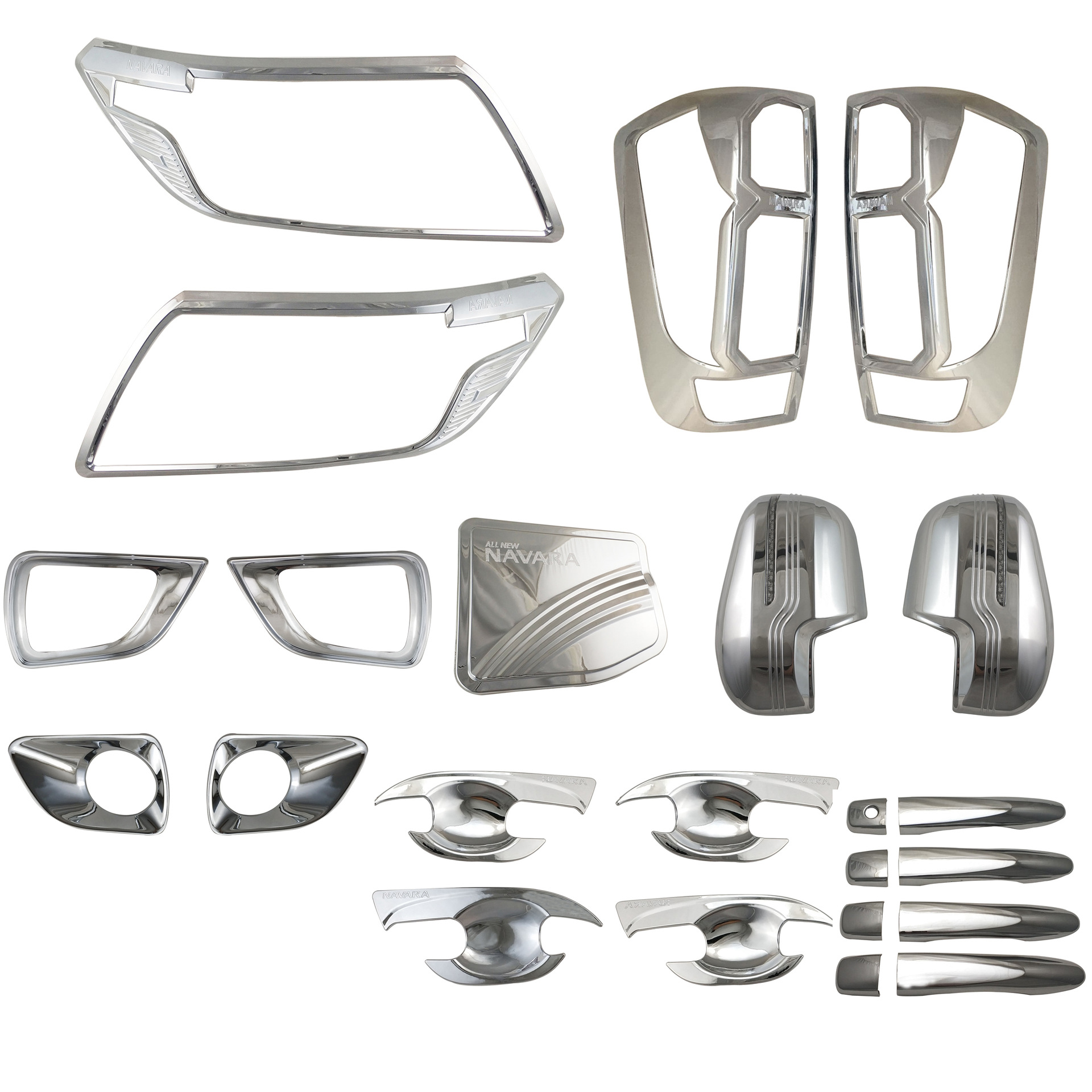 Tags: ABS car trim, chrome plating set, exterior accessories, Navara NP300 chrome kit, pickup truck styling, protective trim cover, vehicle body decoration