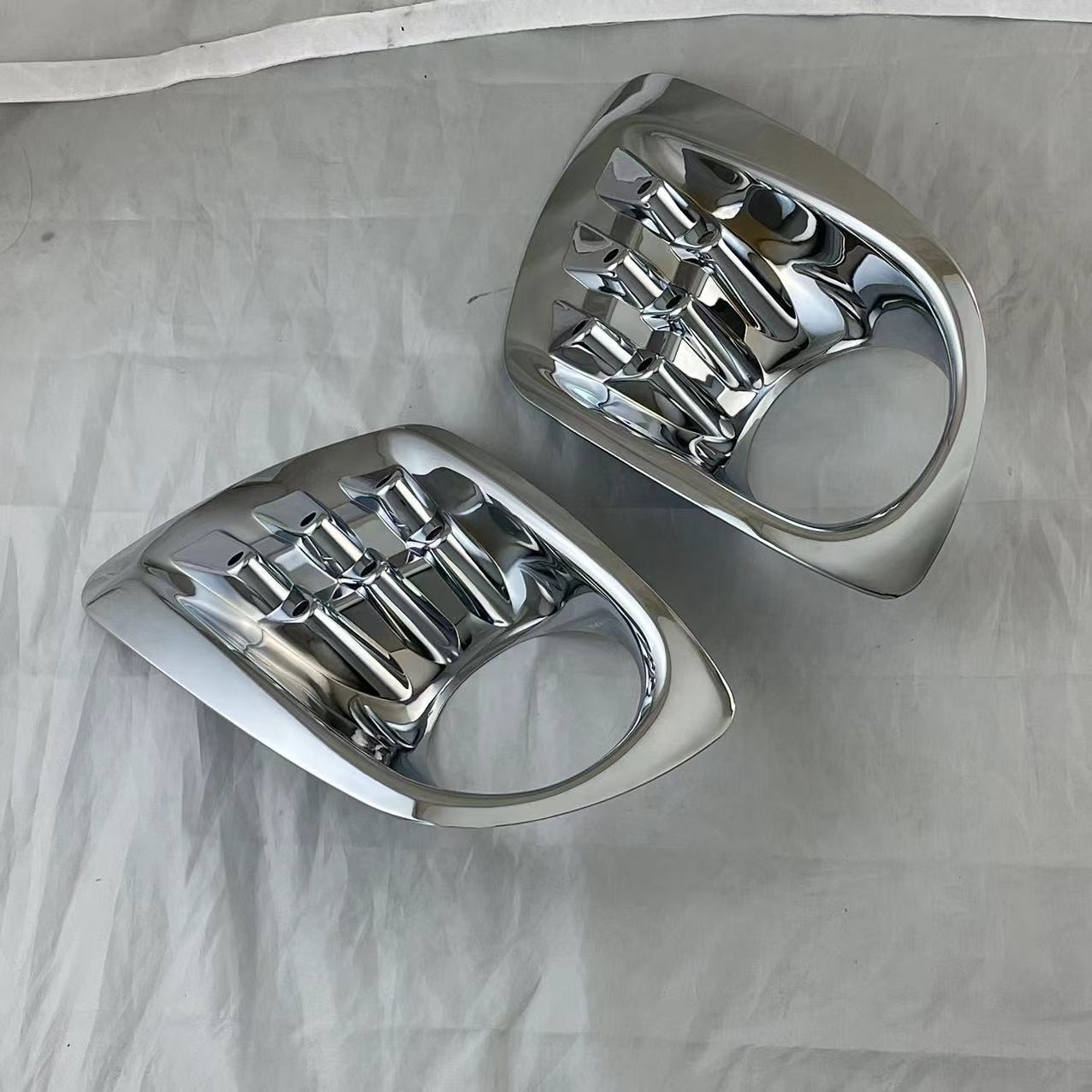 Tags: car styling accents, chrome exterior accessories, decorative lamp frames, electroplated auto parts, fog lamp bezels, front bumper fog covers, hilux vigo trim