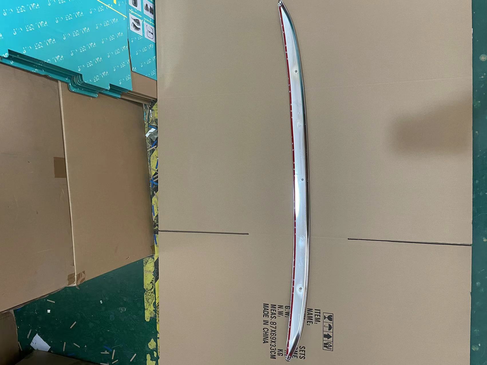 Tags: ABS bumper strip, automotive chrome parts, car exterior accessories, chrome garnish, decorative molding, front bumper trim, Prius 30 styling