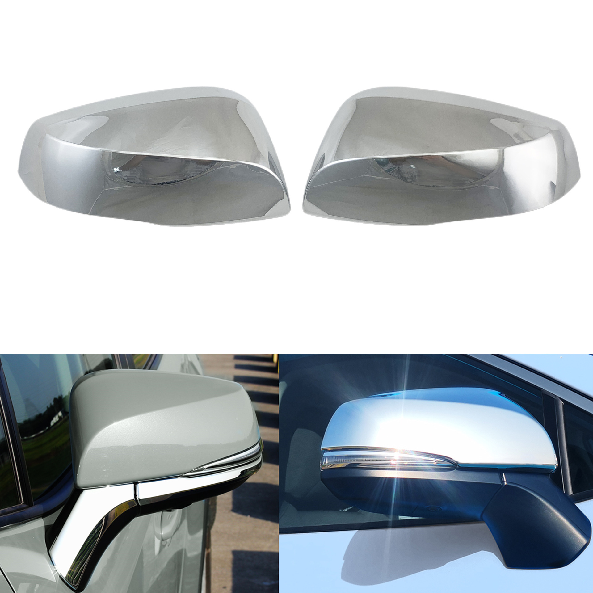 Chrome Plated Exterior Rearview Mirror Cover Trim Set for Toyota RAV4, Crown Kluger, Sienna, Alphard