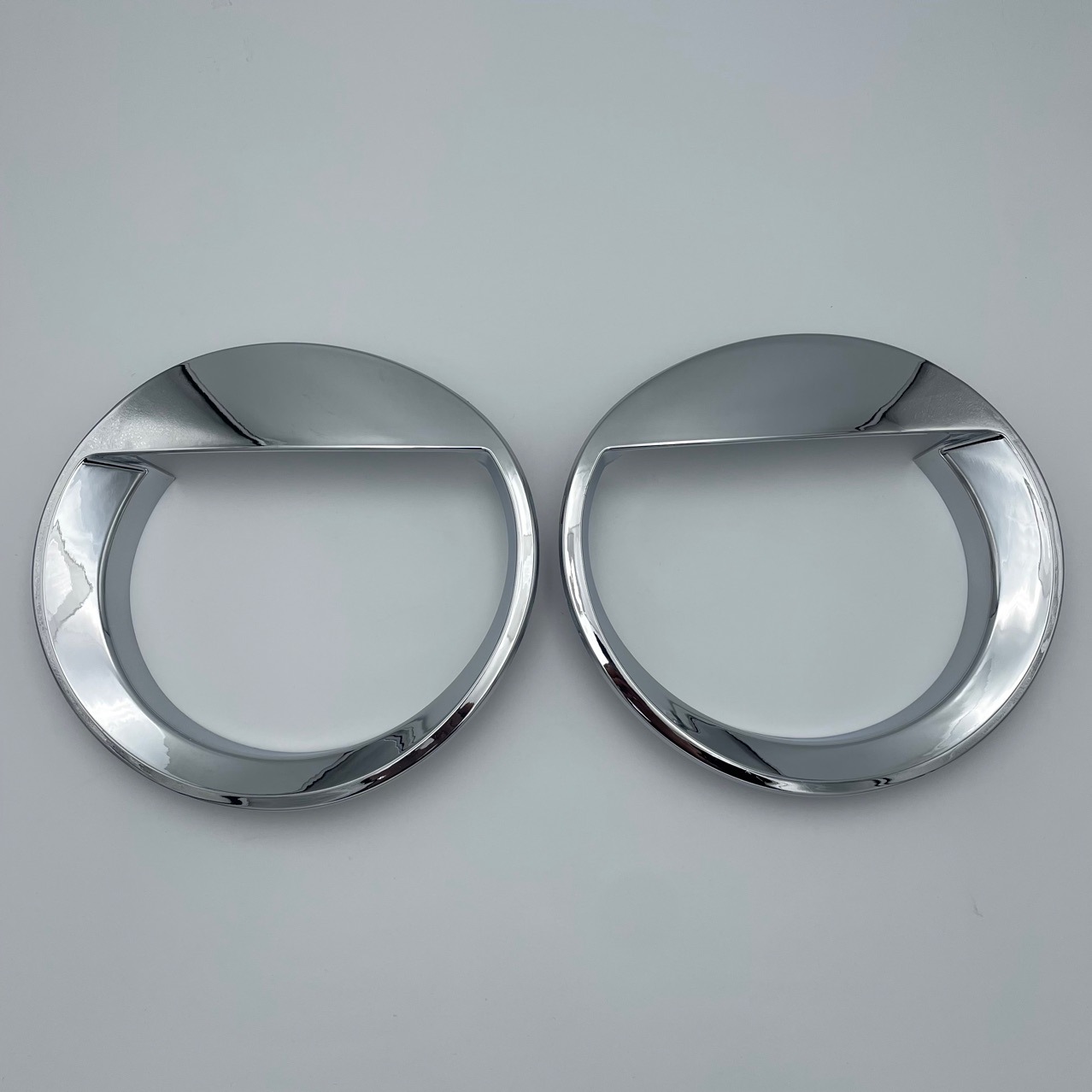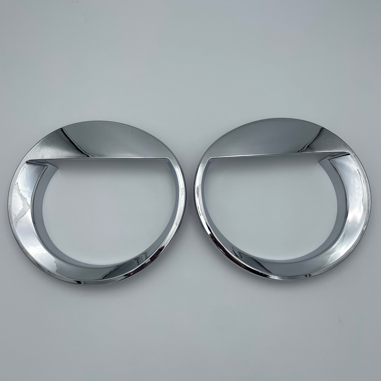 Enhance your car’s look with these High-Quality Chrome Headlight Bezel Rings. Featuring a unique ‘Bird’ style visor design and durable electroplated finish.