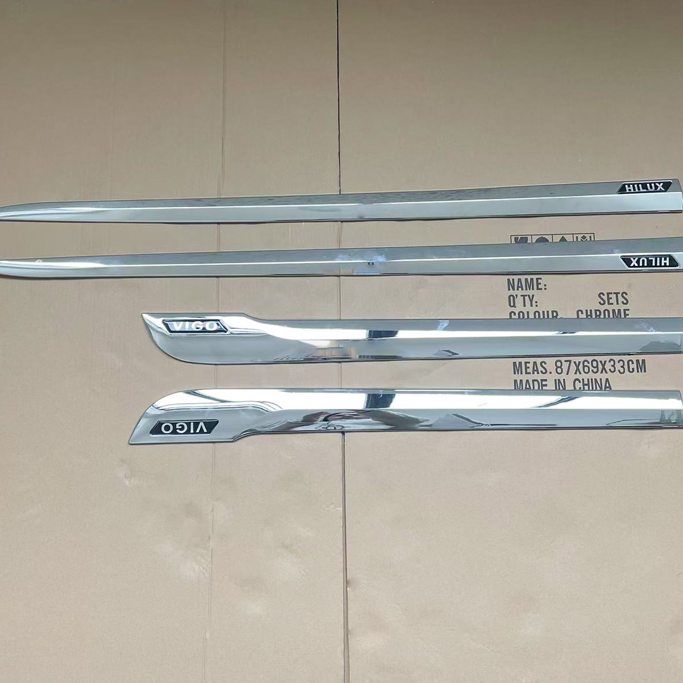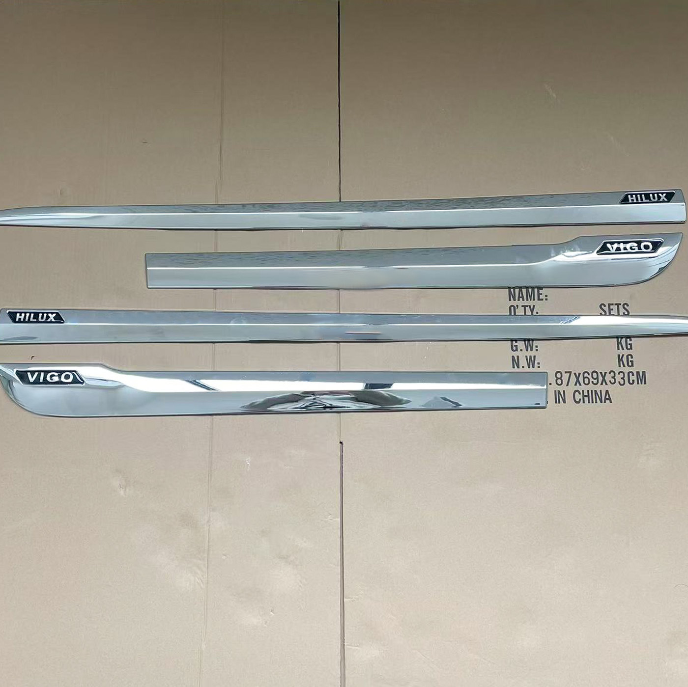 Enhance your 2005-2012 Toyota Hilux Vigo with premium chrome side door body molding strips. Durable protection against scratches with easy adhesive installation.