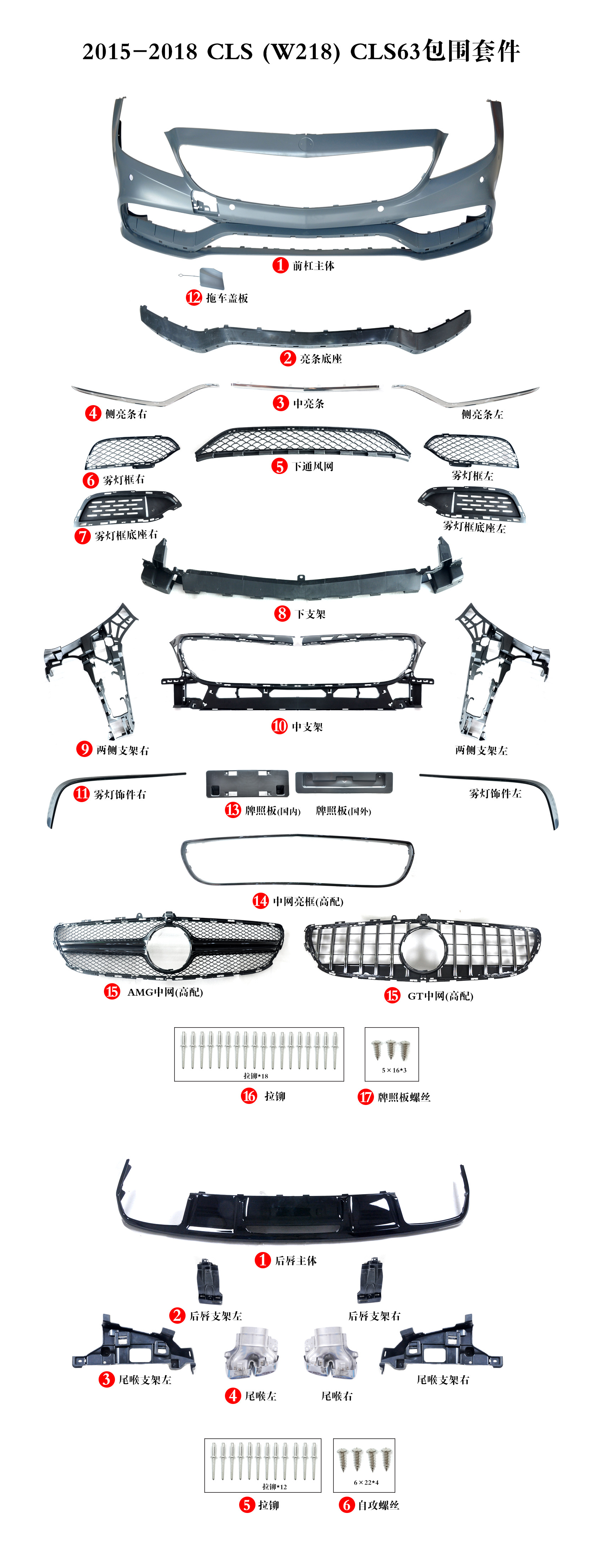 CLS63 Style Body Kit Front Bumper with Rear Diffuser and Exhaust Tips for Mercedes-Benz CLS-Class W218