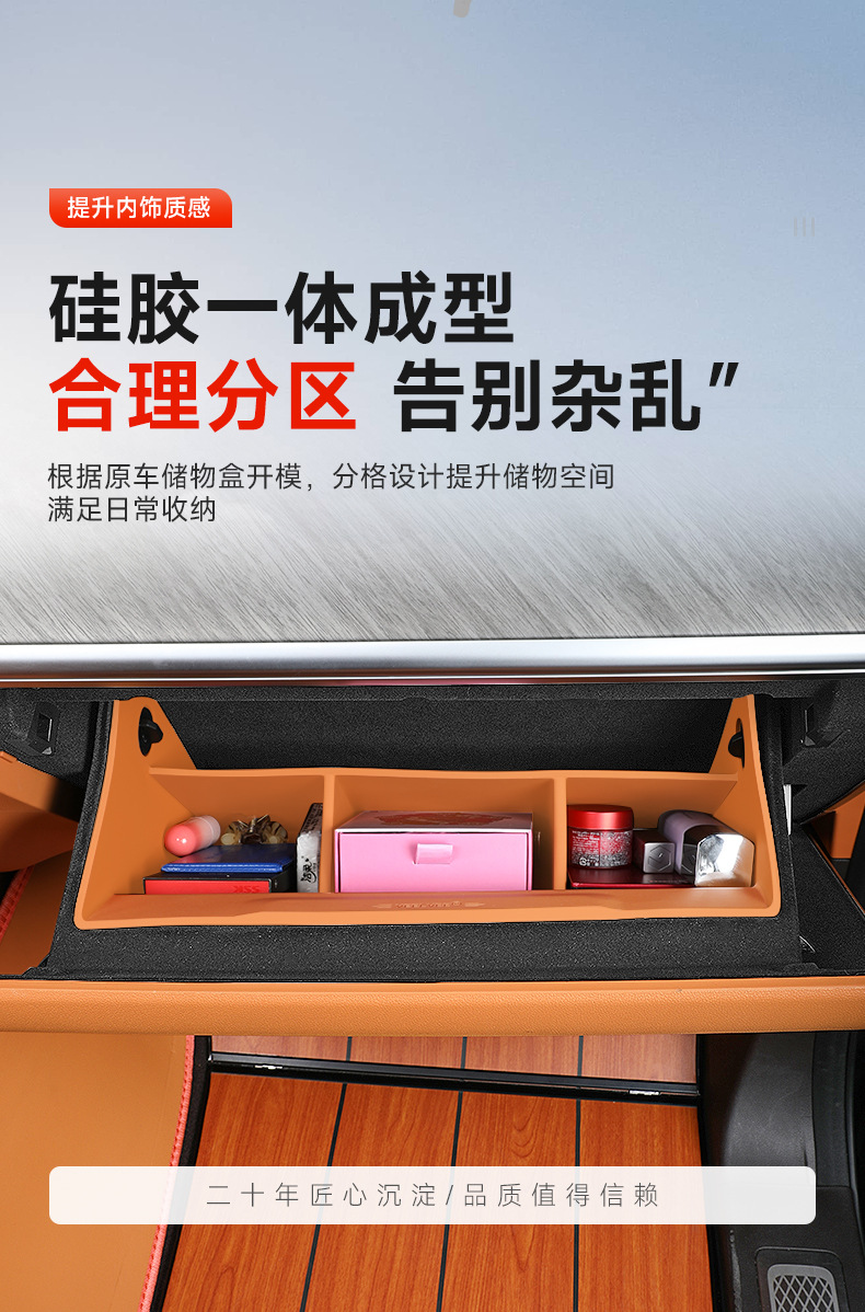 - Customized partition design separates the glove box into organized sections for better space utilization.