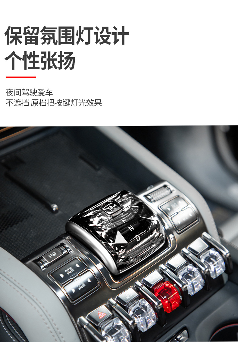 Tags: car styling accessories, center console panel, crystal gear knob, gear shift cover, gear shifter decoration, interior trim upgrade, leopard 5 interior