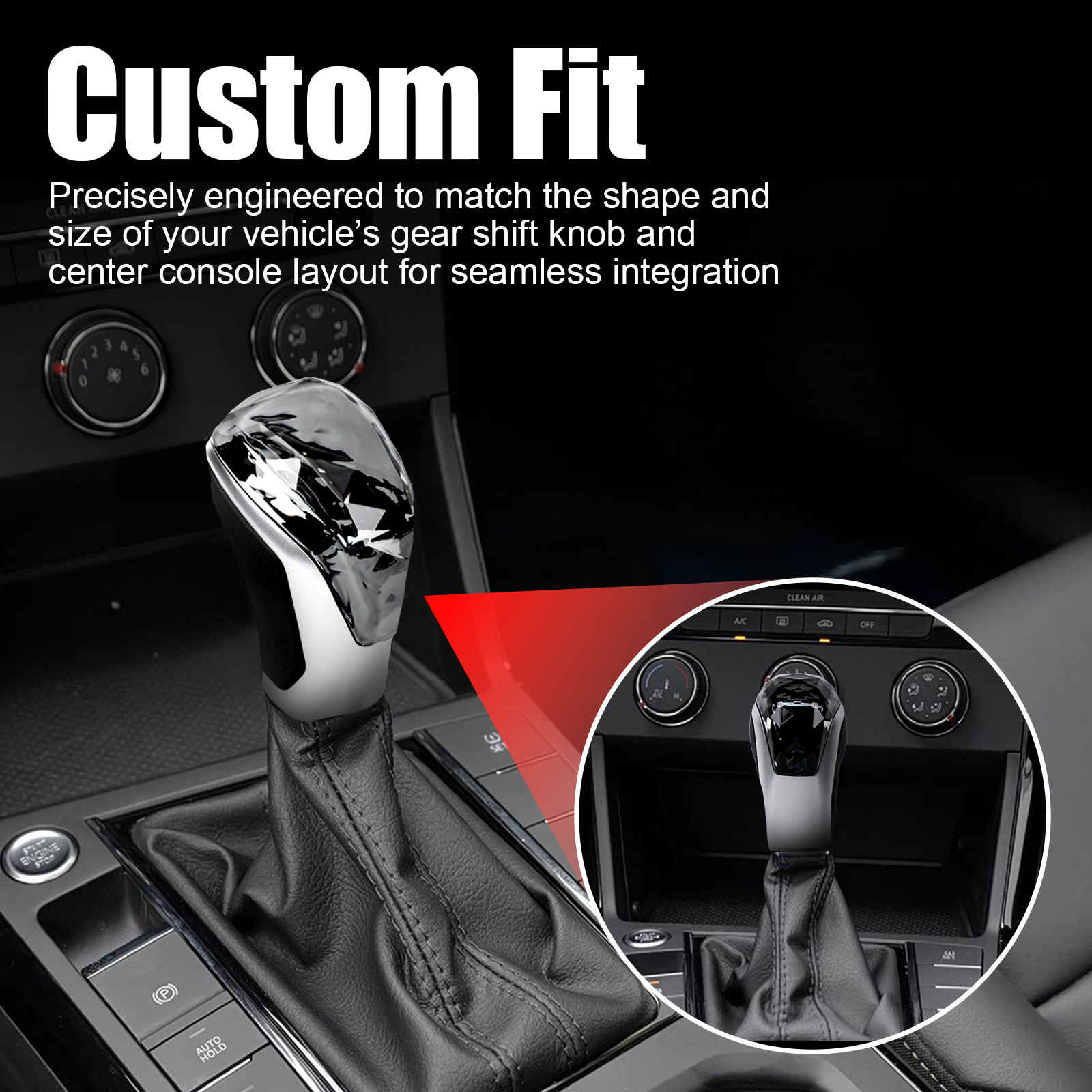 Tags: automatic shifter handle, car interior upgrade, crystal gear knob, decorative shift knob, gear stick cover, VW shift lever