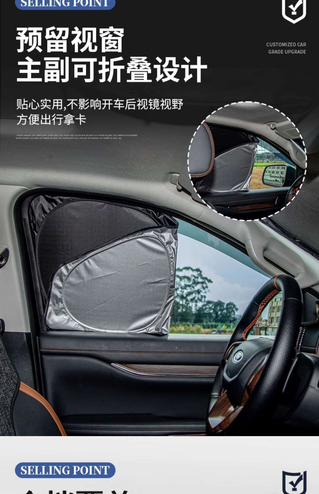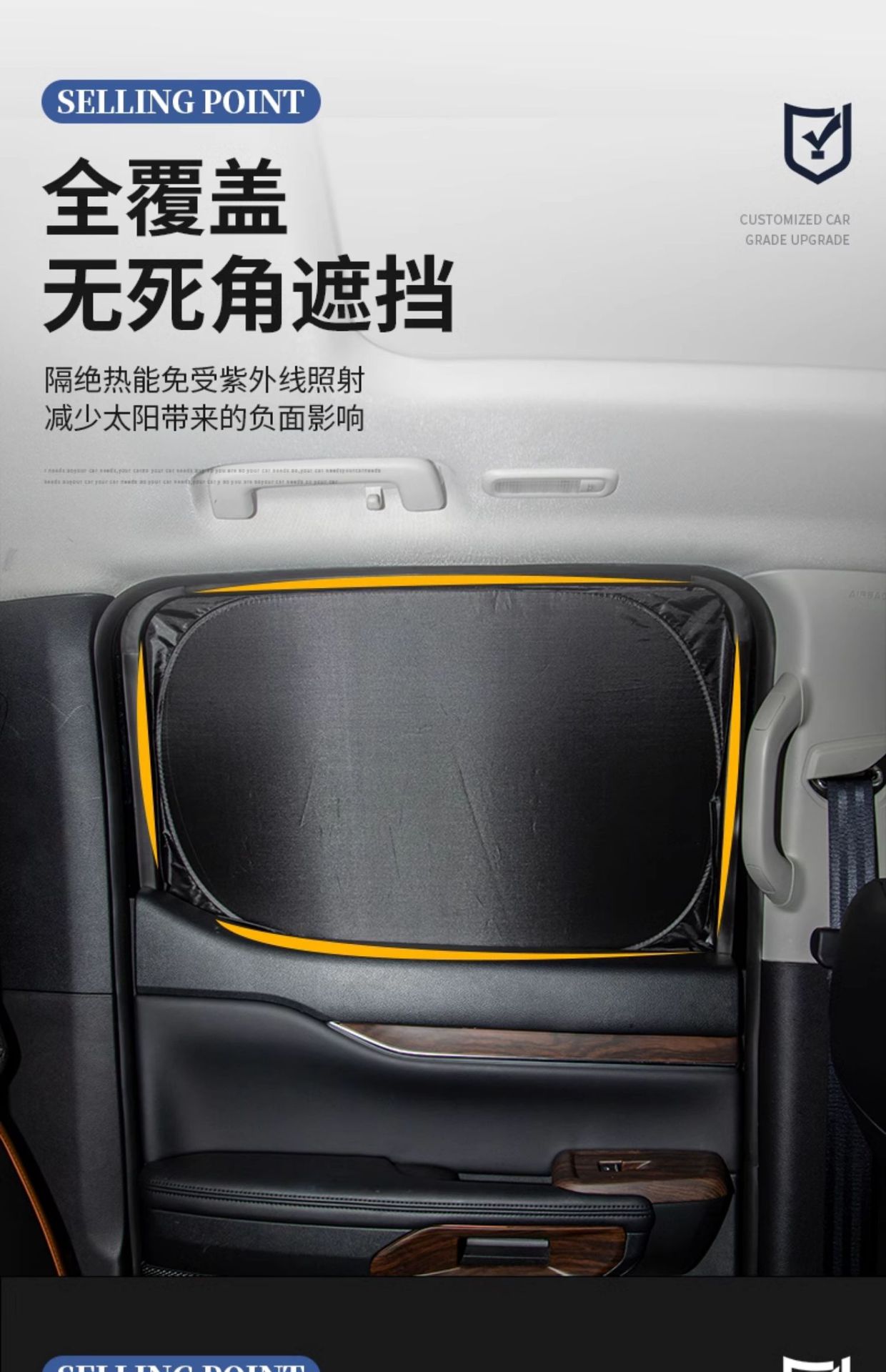 - Multi-layered thermal barrier material reflects UV rays and significantly reduces cabin temperature during hot weather.