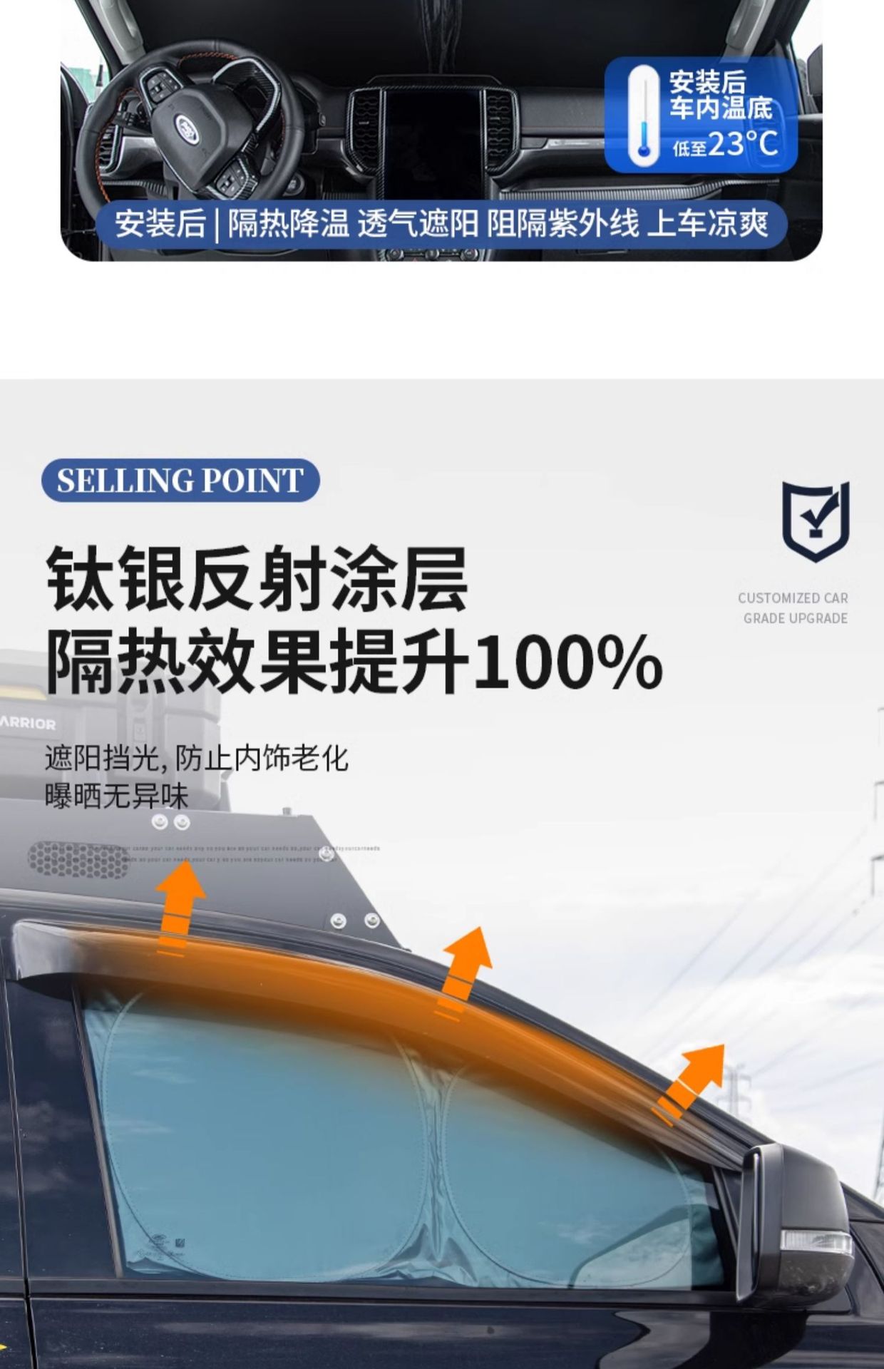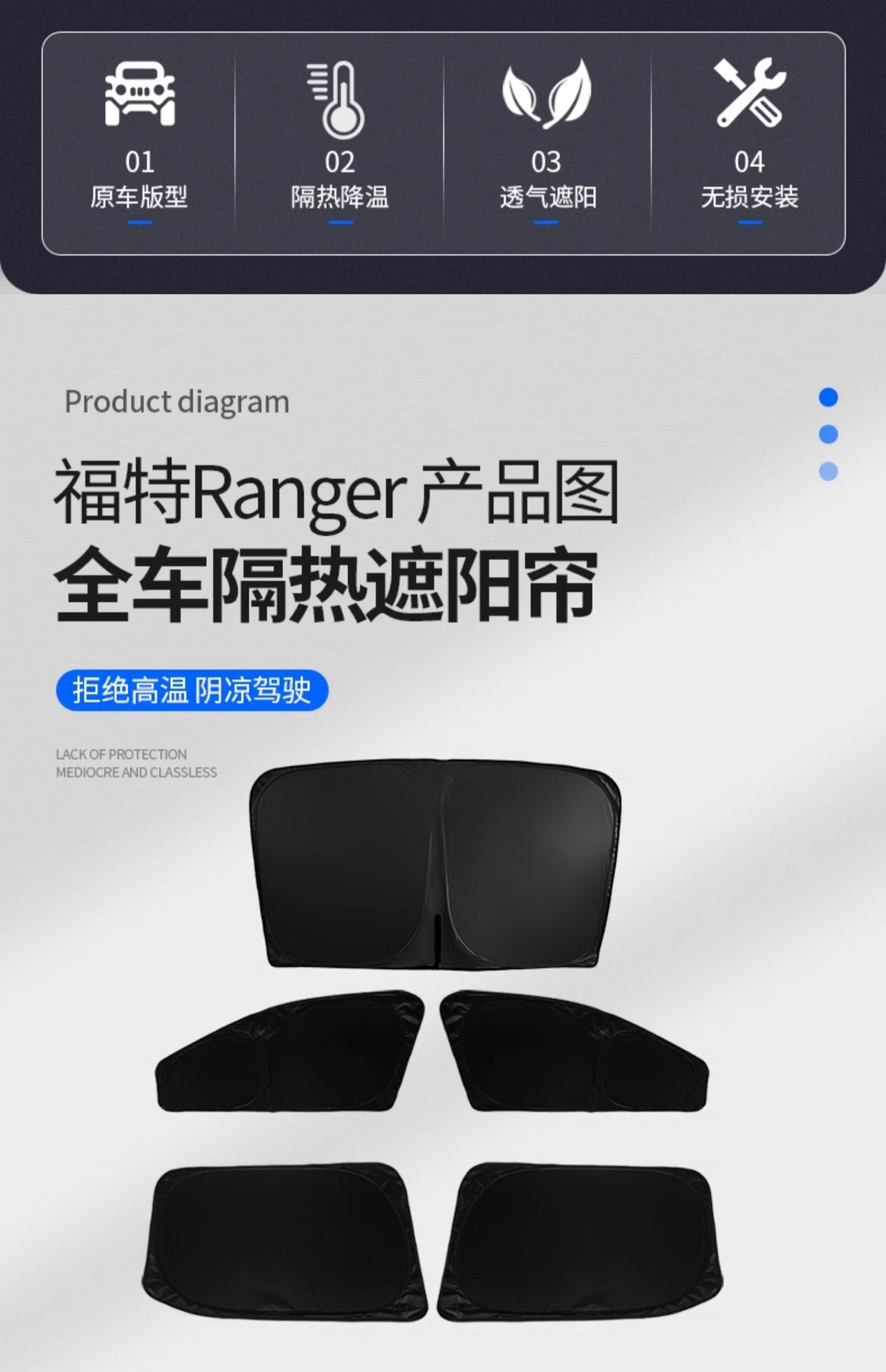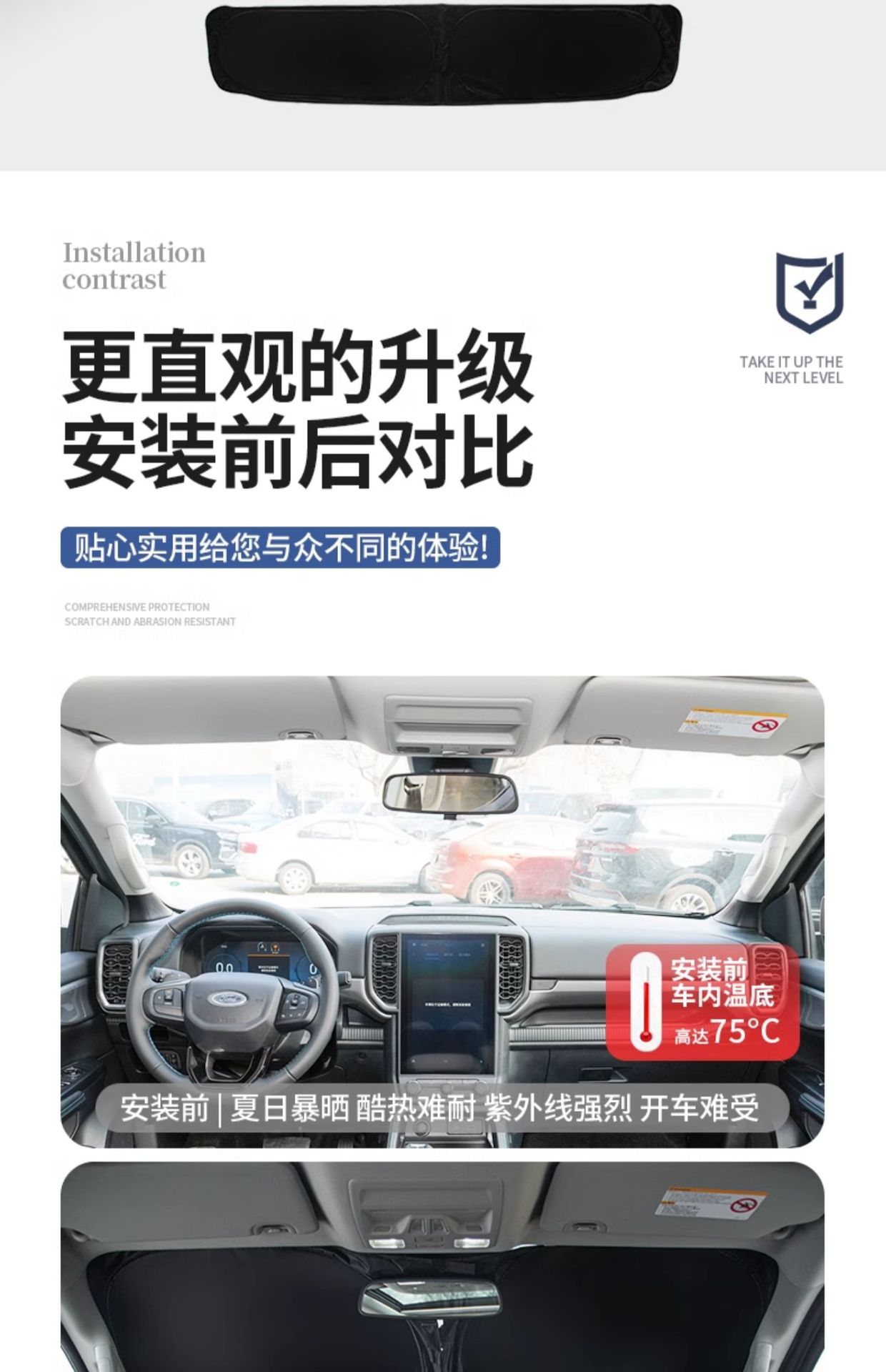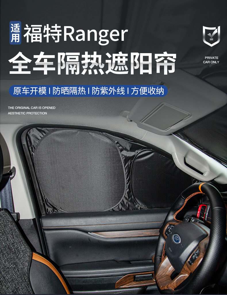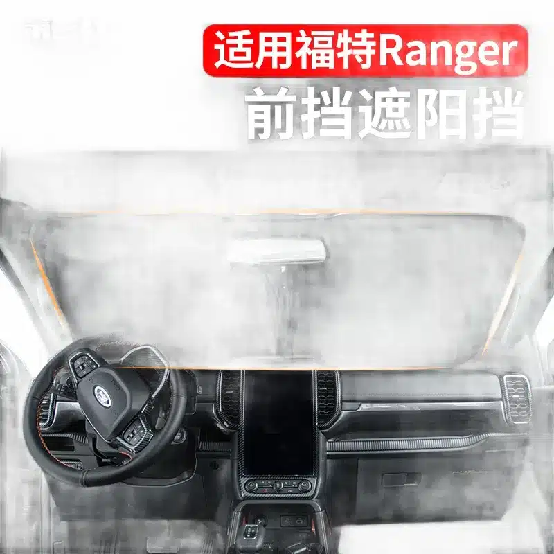 Tags: automotive interior protection, car window insulation, foldable sun reflector, Ford Ranger sunshade, heat shield kit, windshield sun visor