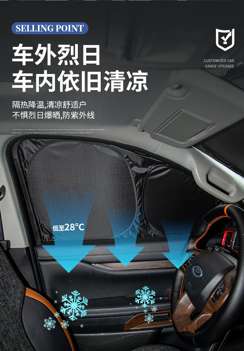 Custom Car Sunshade Set for Ford Ranger, Full Coverage Heat Insulation Front Windshield and Side Windows Sun Visors